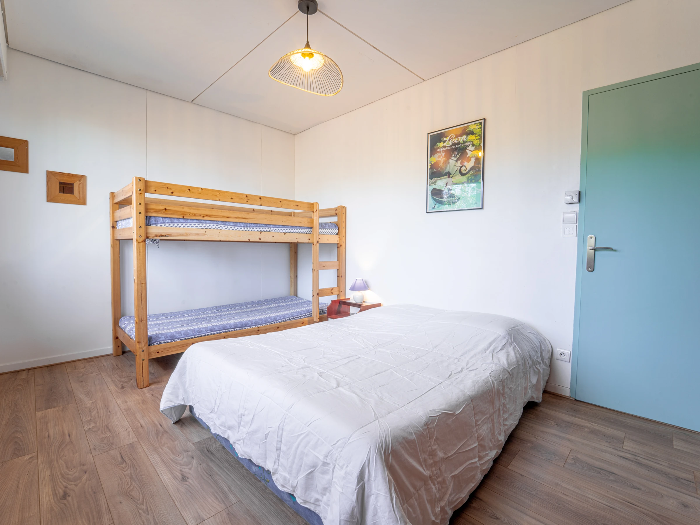 L’espace nuit se compose de deux chambres avec lit double, d’une chambre avec deux lits simples, d’une chambre avec deux lits superposés et un clic-clac offrant deux couchages supplémentaires, ainsi que de deux salles de bain dont une avec WC et d’un WC séparé pour plus de confort. À l’extérieur, deux terrasses situées de chaque côté de la maison vous invitent à profiter pleinement des journées ensoleillées, avec table, chaises et plancha pour des repas conviviaux en plein air.