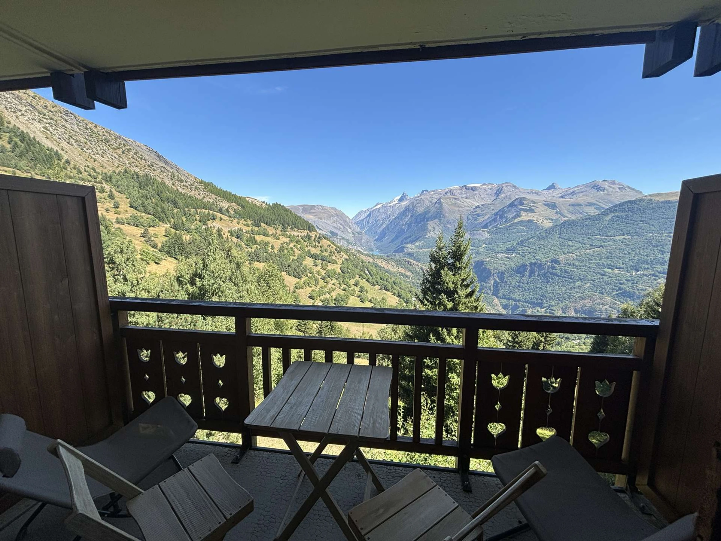 Confortable studio cabine, avec une décoration soignée, très bien équipé et très bien rénové. Son balcon équipé d'un salon de jardin, offre une vue complétement dégagée sur les massifs des Ecrins