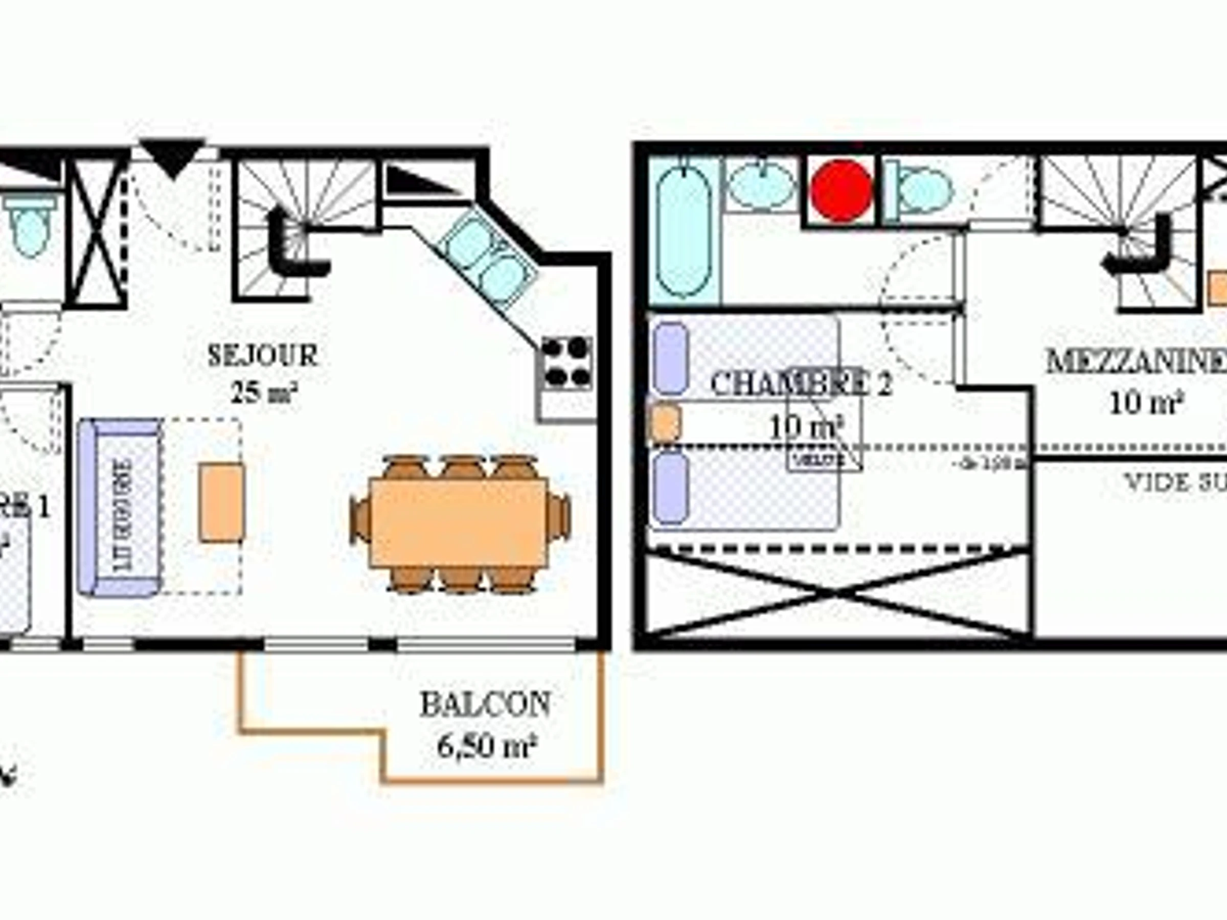 Mezzanine : 2 lits gigognes (2x1 pl ou 1x2 pl)
