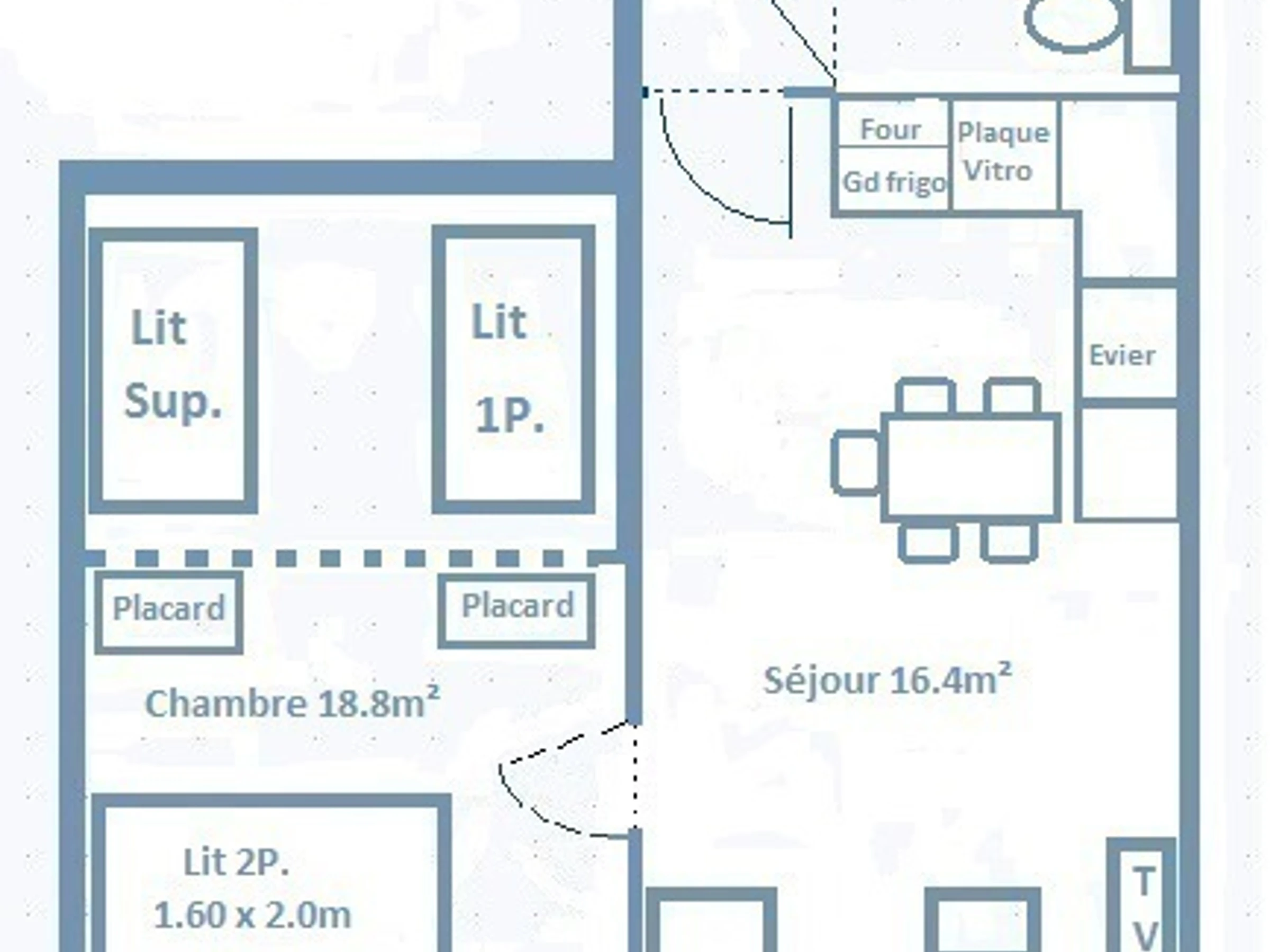 Cuisine : Réfrigérateur grande capacité, plaques vitro céramiques, combiné micro-ondes, TV, Lave-vaisselle, casier à ski
