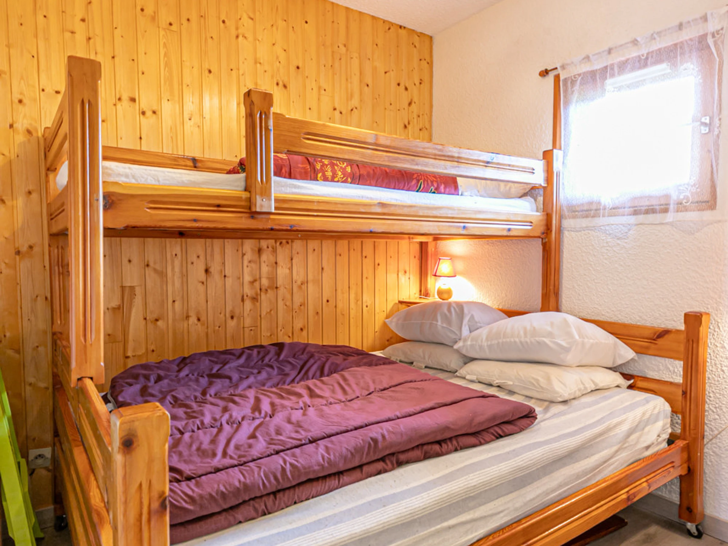 Cuisine/Séjour : réfrigérateur, plaques vitrocéramiques, four, micro-ondes, lave-vaisselle, TV. Autre : Casier à skis