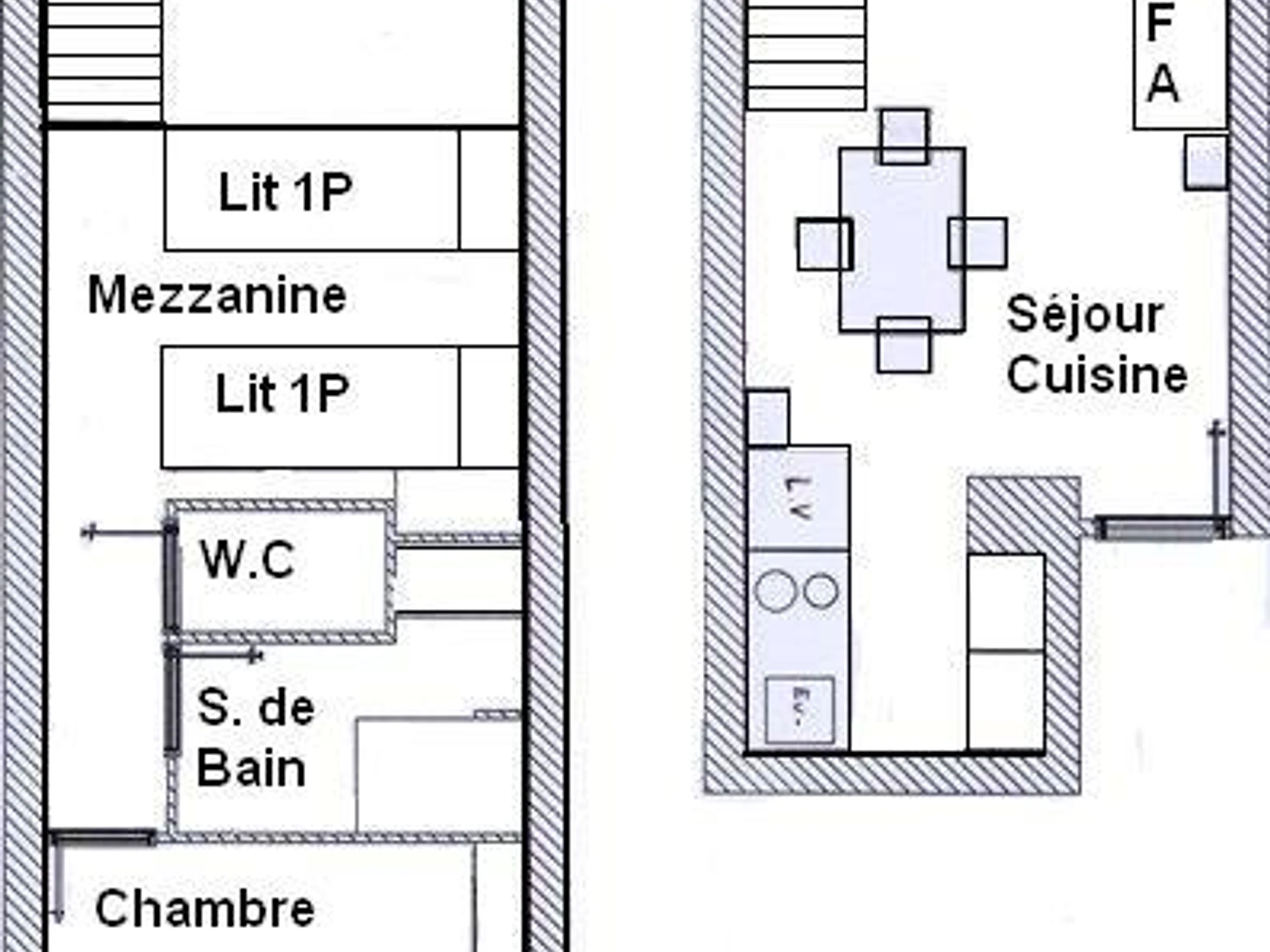 Mezzanine : 2 lits 1 place