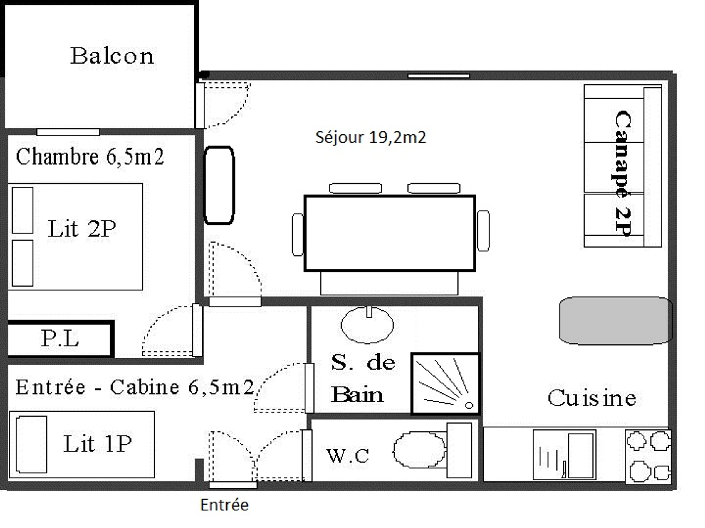 Appartement 2 pièces - 4 personnes - Classé 2** - Surface de 37m², en rez-de- chaussée, orienté Est avec balcon.