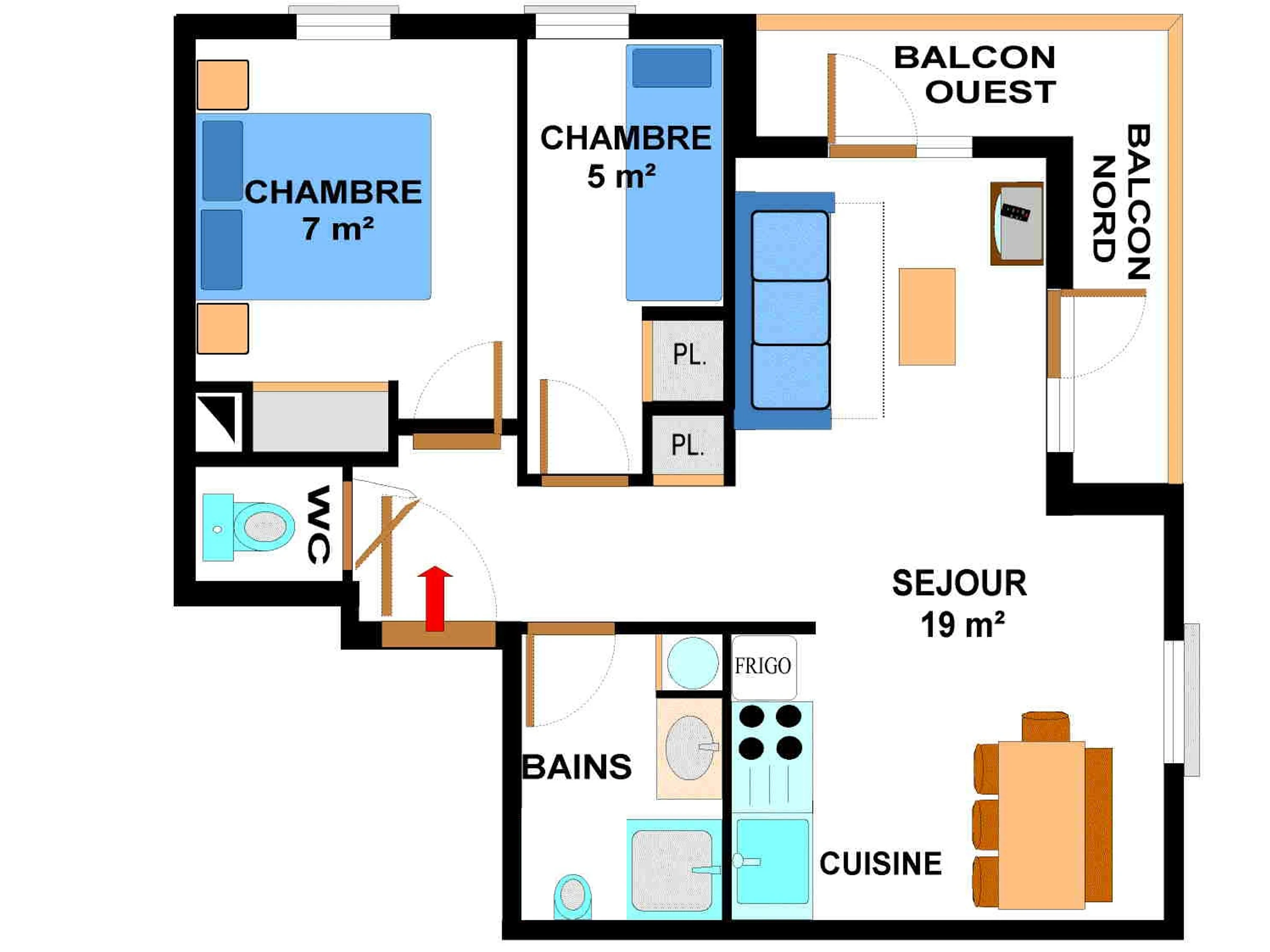 A Aussois, dans la résidence "Les Sports", appartement agréable pour 6 personnes.