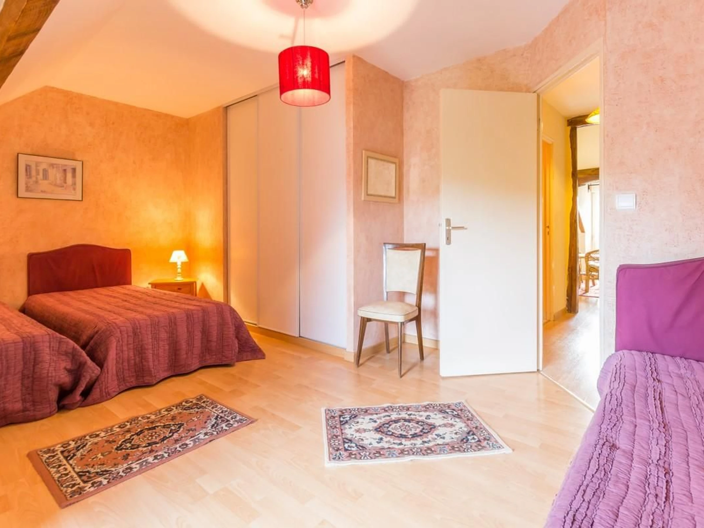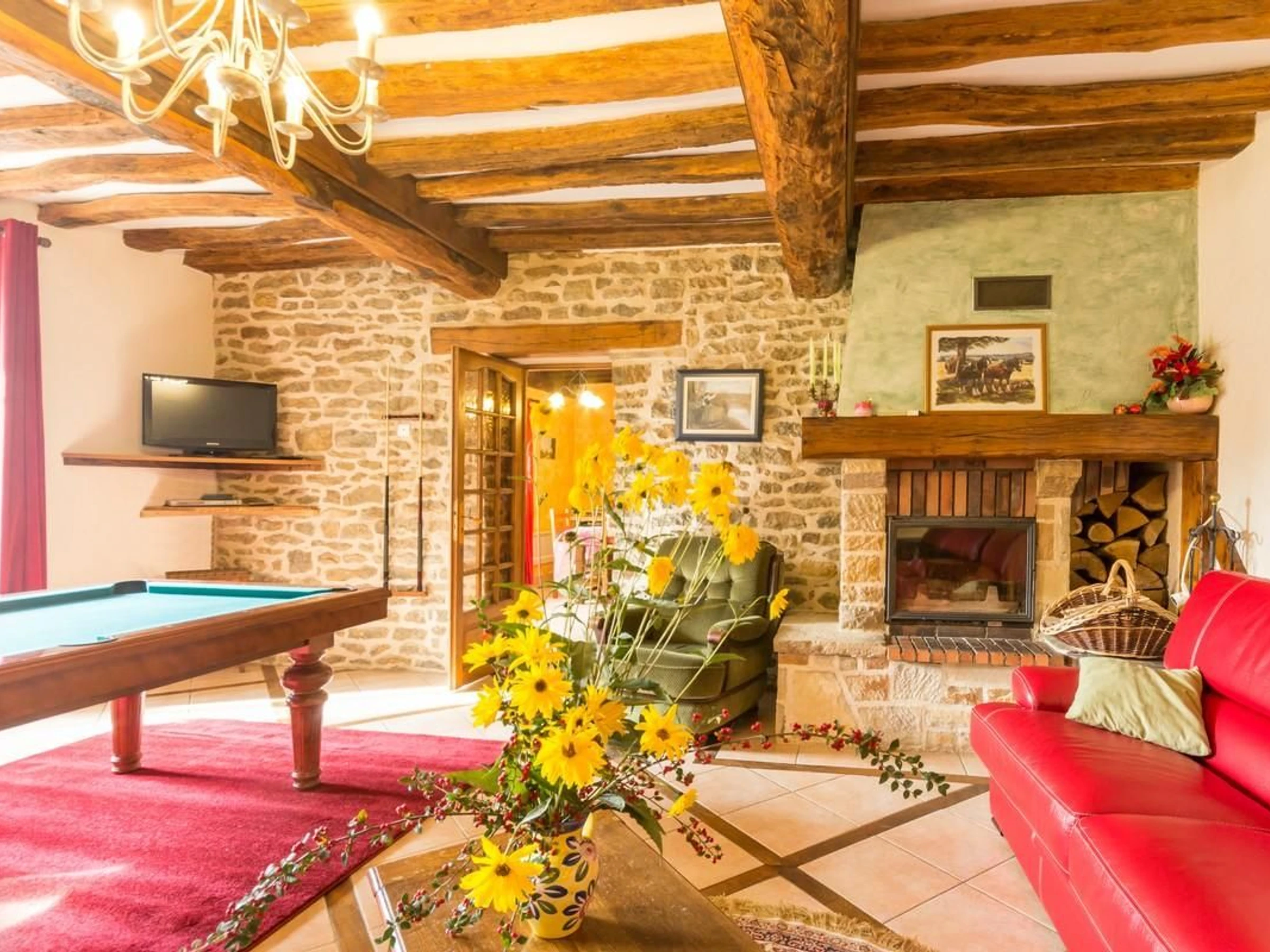 Le plus grand gîte dispose au rez-de-chaussée, d'une cuisine ouverte sur la salle à manger avec poêle à bois et murs en pierre. Salon avec cheminée insert et billard américain. Une chambre (1 lit 160, 1 lit 90). Salle d'eau avec WC.