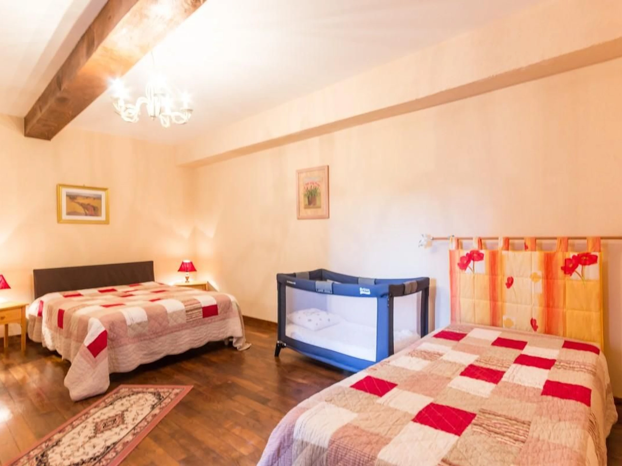 A l'étage : une chambre avec lit 160, une chambre avec 2 lits 90 jumelables et une chambre avec 3 lits 90 dont 2 jumelables. Salle d'eau et WC indépendant. Terrasse. Table de ping-pong, baby foot.