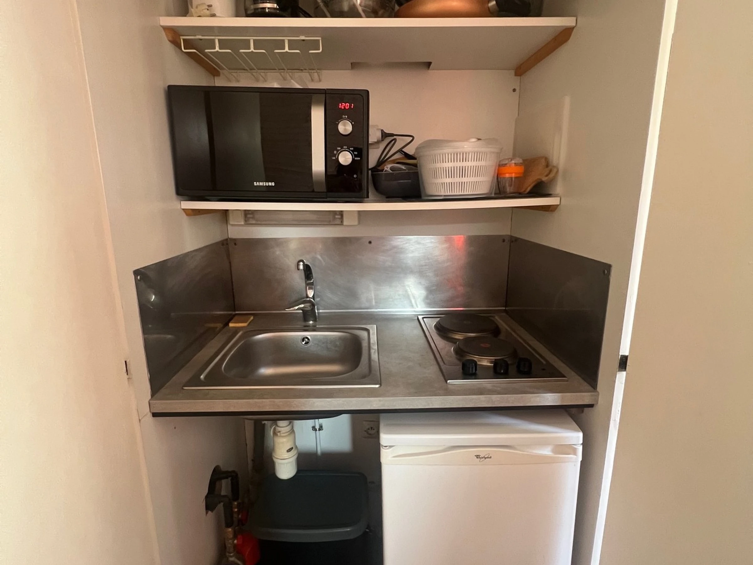 Séjour : kitchenette (micro-ondes, réfrigérateur, plaques chauffantes)