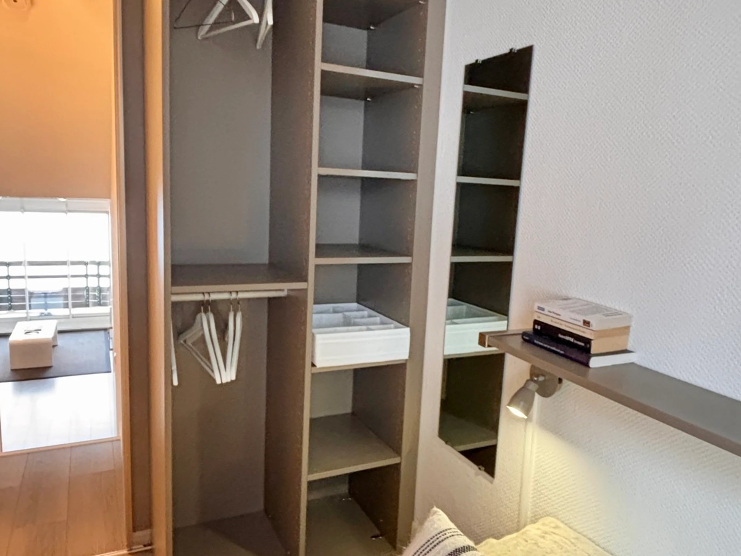 - Une première petite chambre (env. 4m2) avec 1 lit double (140x190) et rangements.