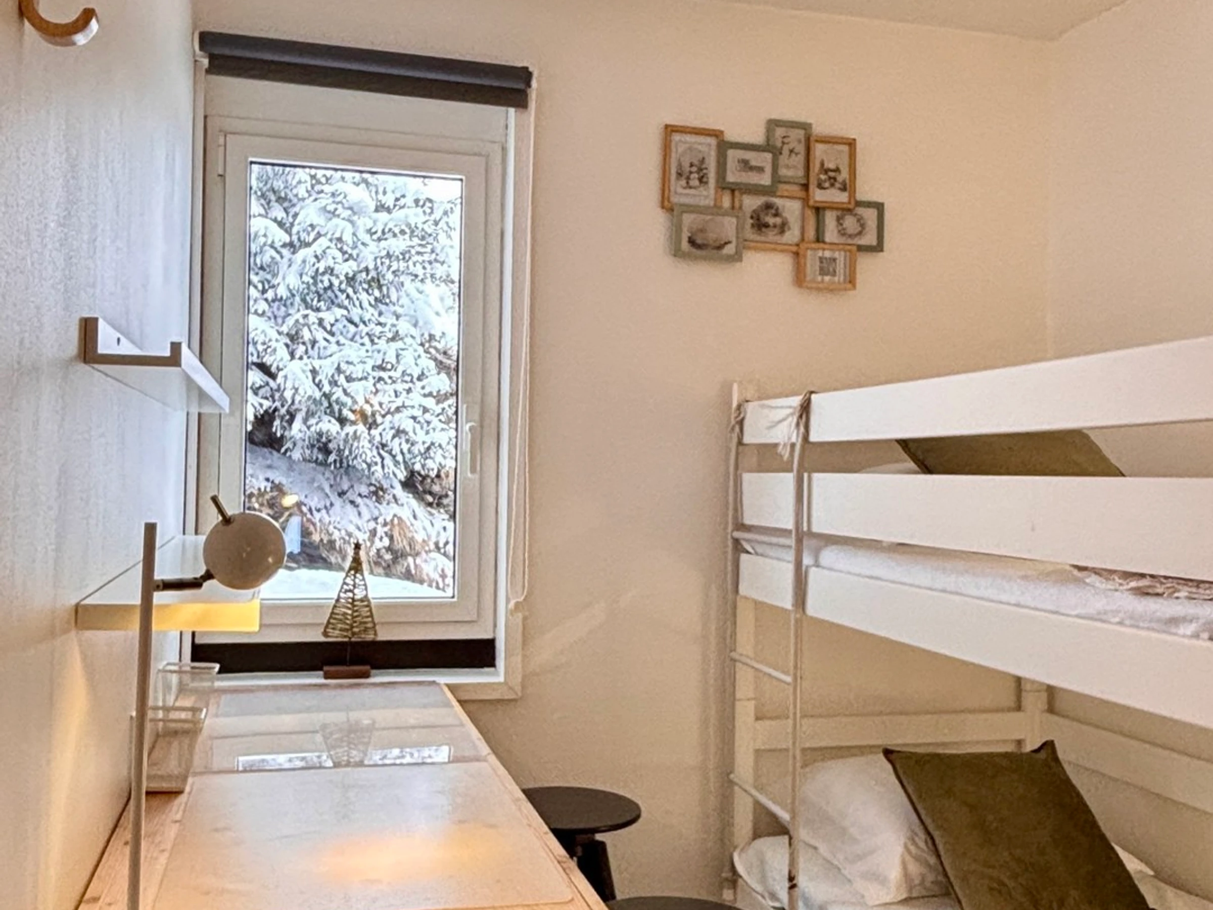 - Une seconde petite chambre avec 2 lits superposés (80x185) et 1 lit encastré (75x190); bureau et placard de rangement.