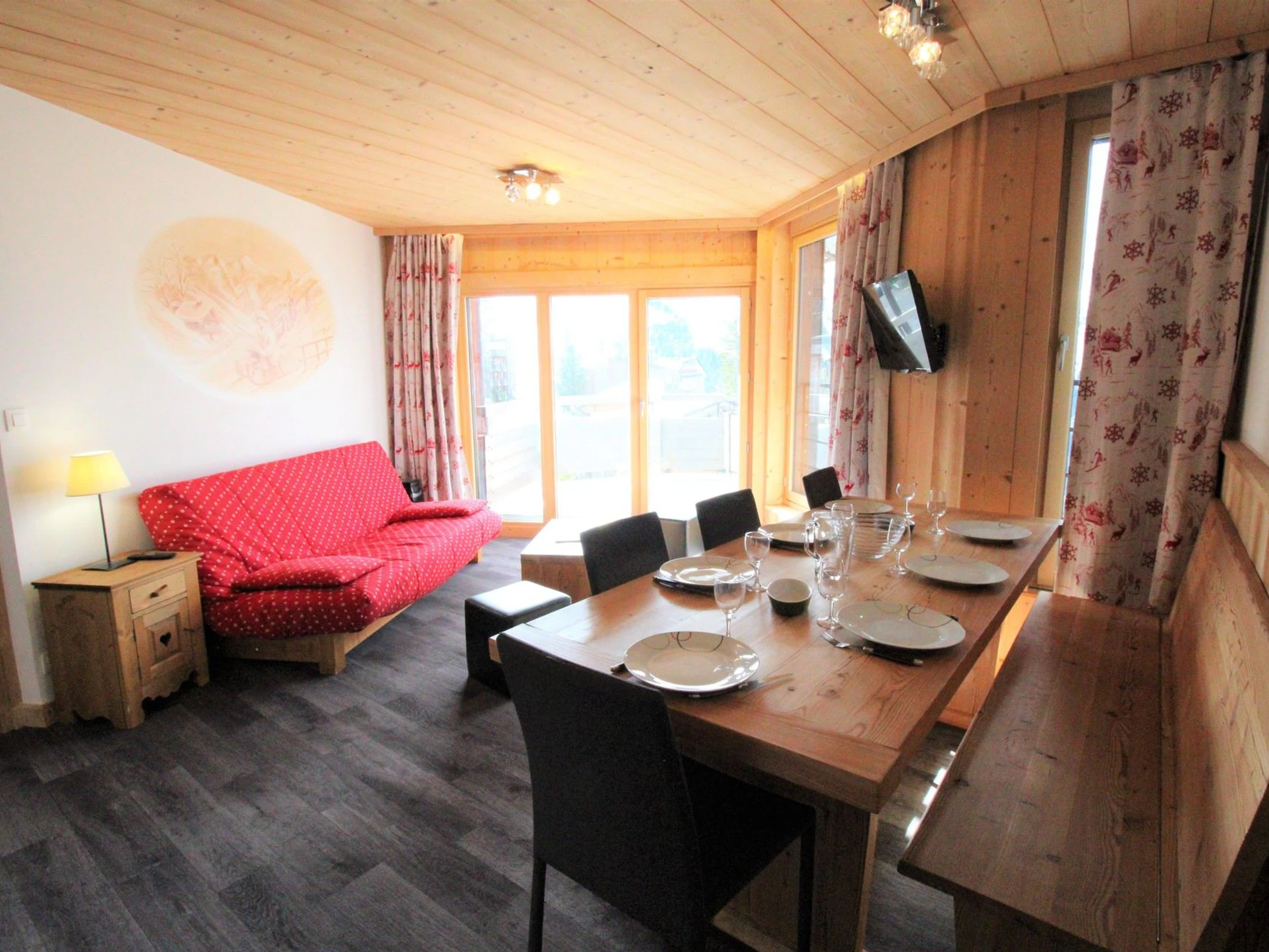 - Salon /séjour avec canapé convertible (140x190) donnant sur le balcon/terrasse, ouvert sur la salle à manger