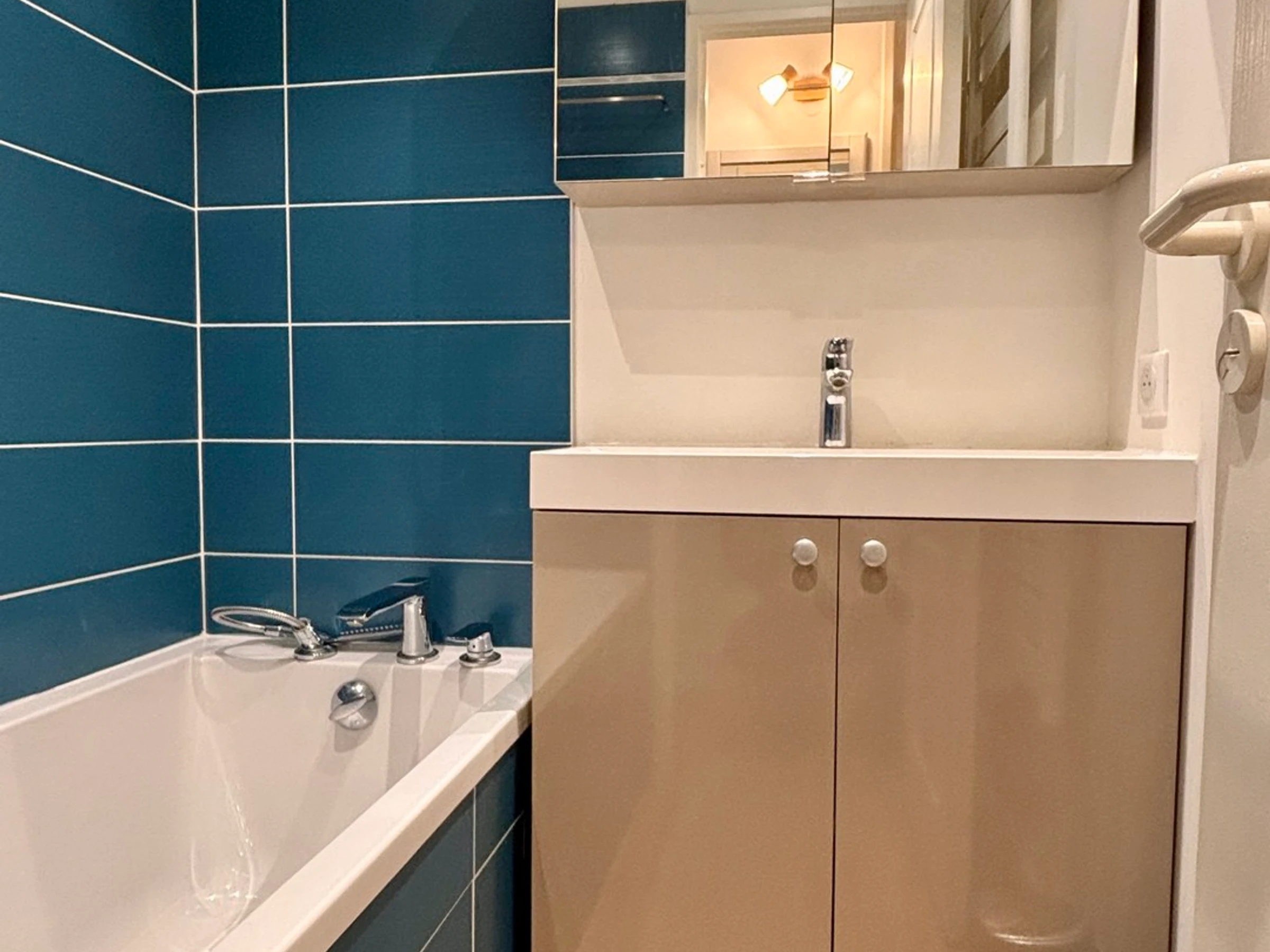 Sur votre droite, se trouvent la salle de bain et la salle de douche.