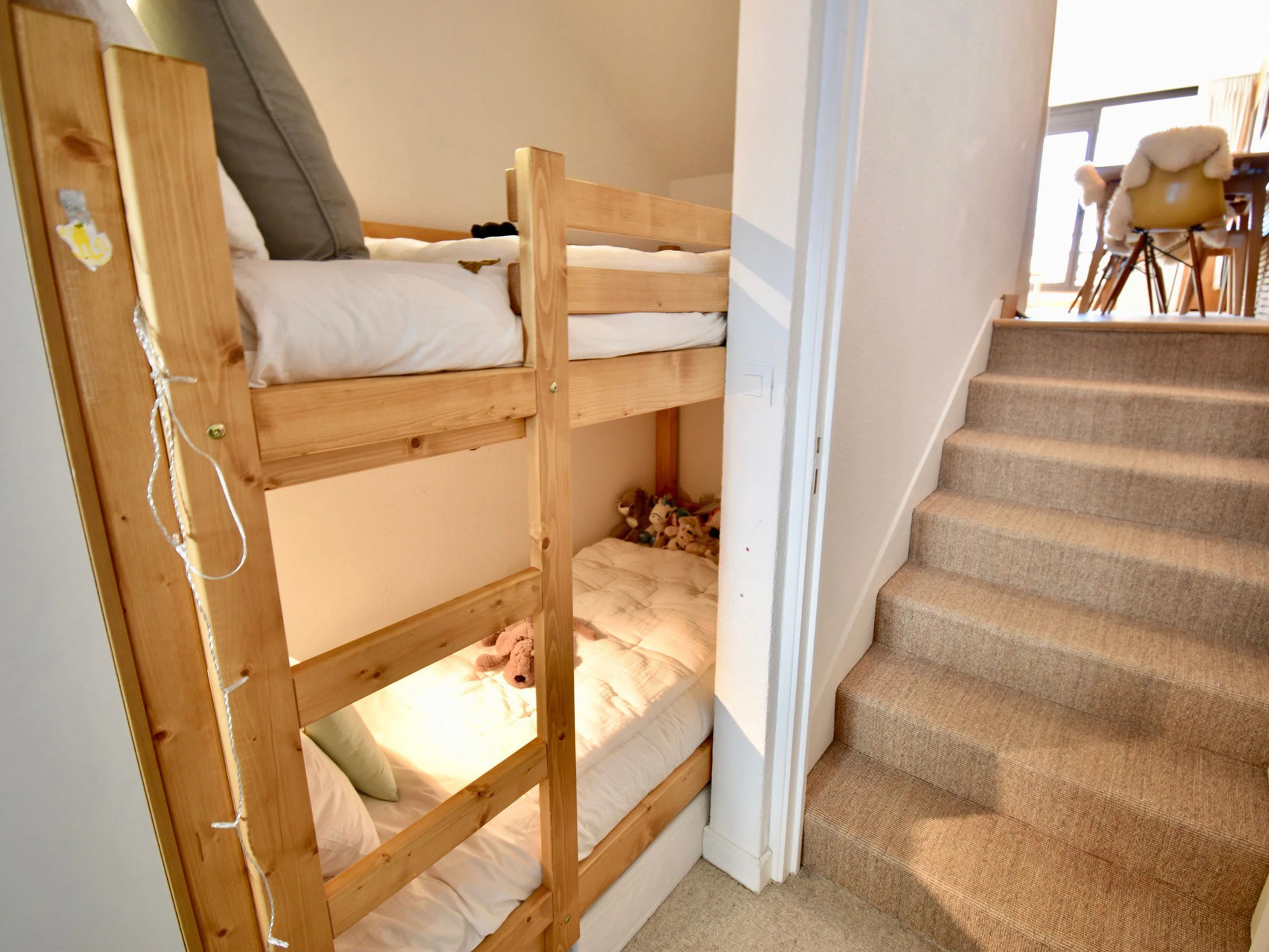- Une chambre avec un canapé convertible / chauffeuse(140x200) avec TV et 2 lits simples superposés (2X90X200)