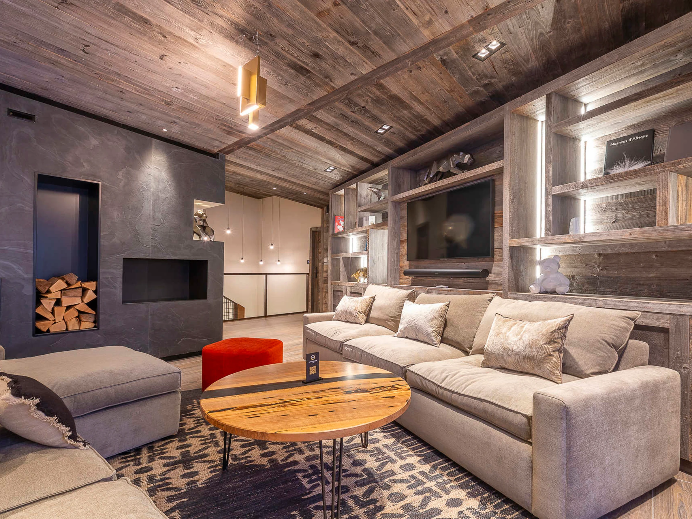 Ce splendide appartement triplex de 182 m² a été imaginé pour accueillir confortablement jusqu'à 10 personnes. Réparti sur trois niveaux, il séduit par ses grands espaces, ses matériaux haut de gamme et son emplacement exceptionnel, à deux pas du centre de la station et au pied des pistes. L'appartement partage également un espace bien être de 400m² avec piscine, spa, hammam, salle de massage et salle de sport.