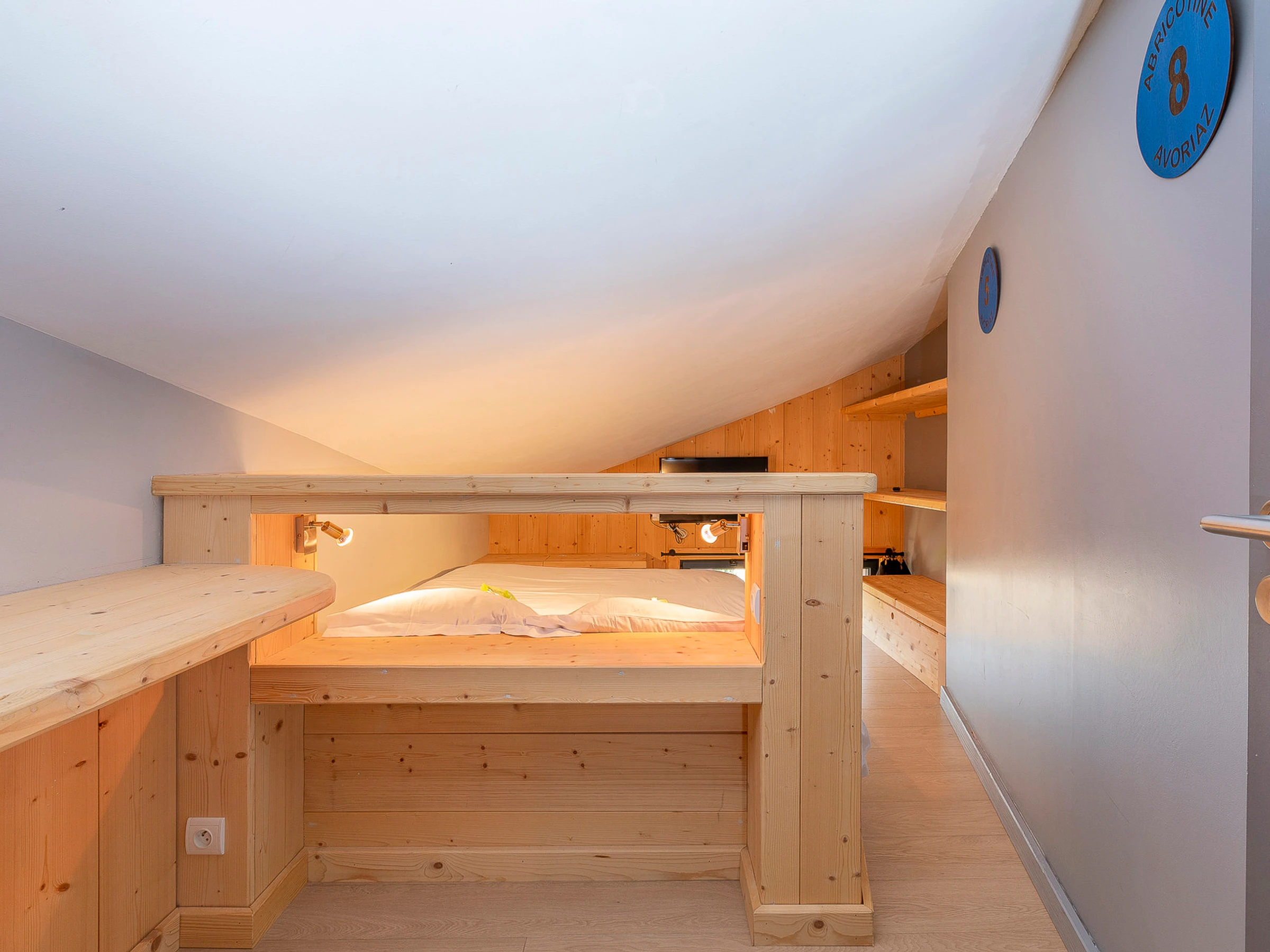 Situé au 4ème étage de la résidence Hôtel de la Falaise, cet appartement en duplex d’environ 44 m² peut accueillir jusqu’à 6 personnes. Fonctionnel et chaleureux, il bénéficie d’une belle exposition Sud-Est avec vue dégagée sur les montagnes.
