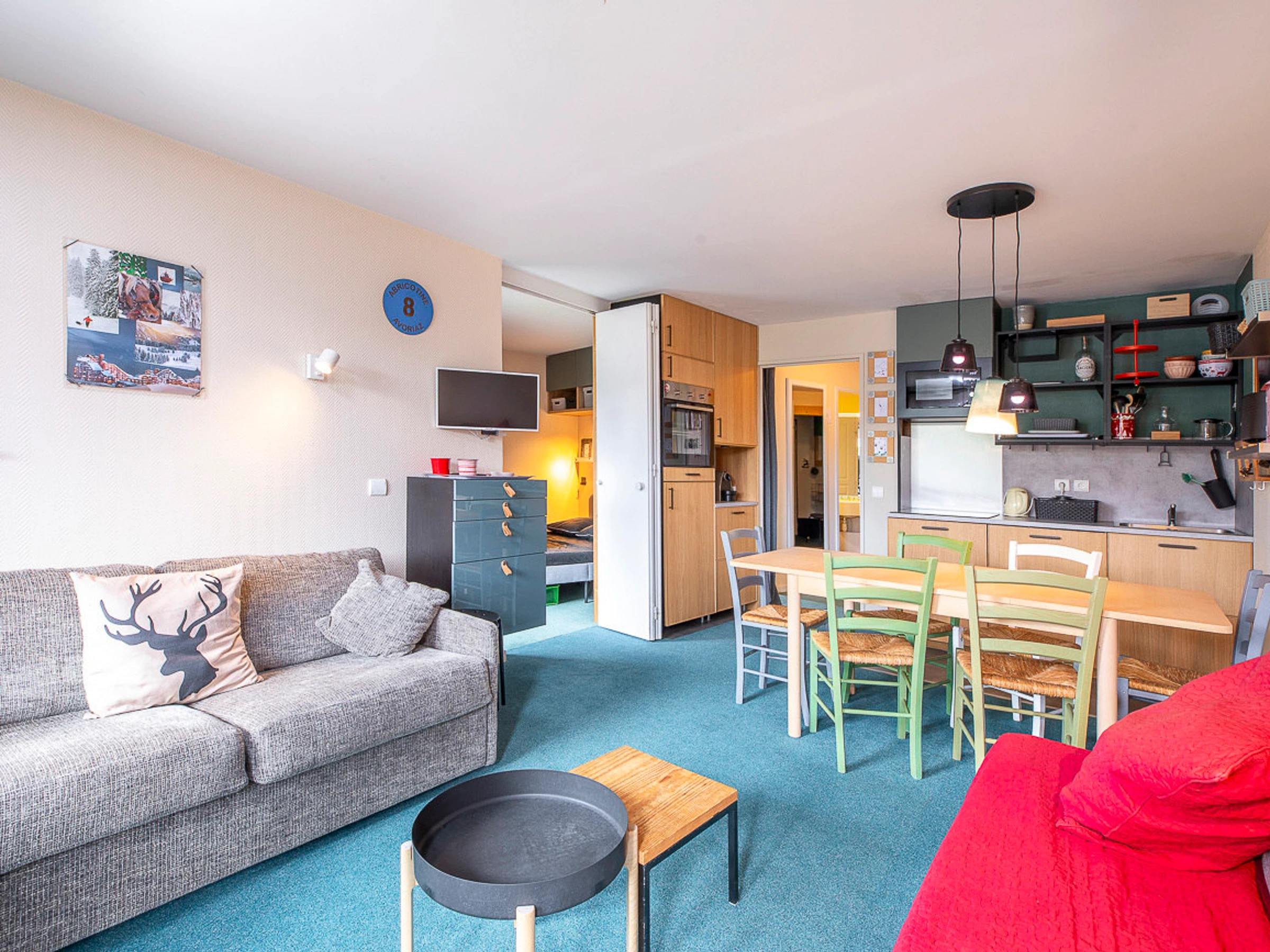 Le salon, lumineux grâce à ses larges fenêtres orientées sud-est, comporte deux canapés dont un convertible en lit double (140x190 cm). Vous y trouverez aussi une télévision.