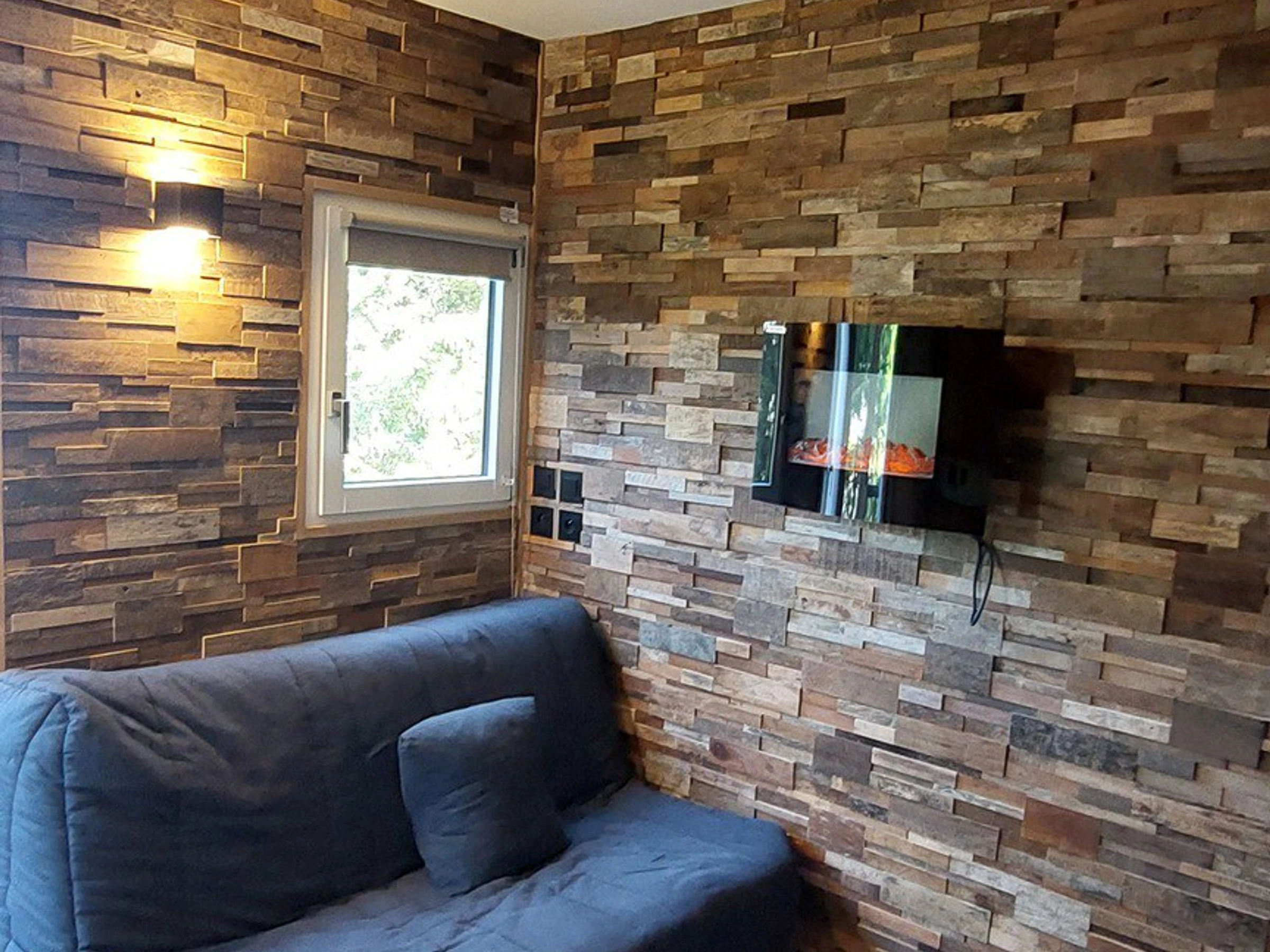 Séjour : avec le coin repas, un canapé lit de 2 personnes et 1 lit superposé,