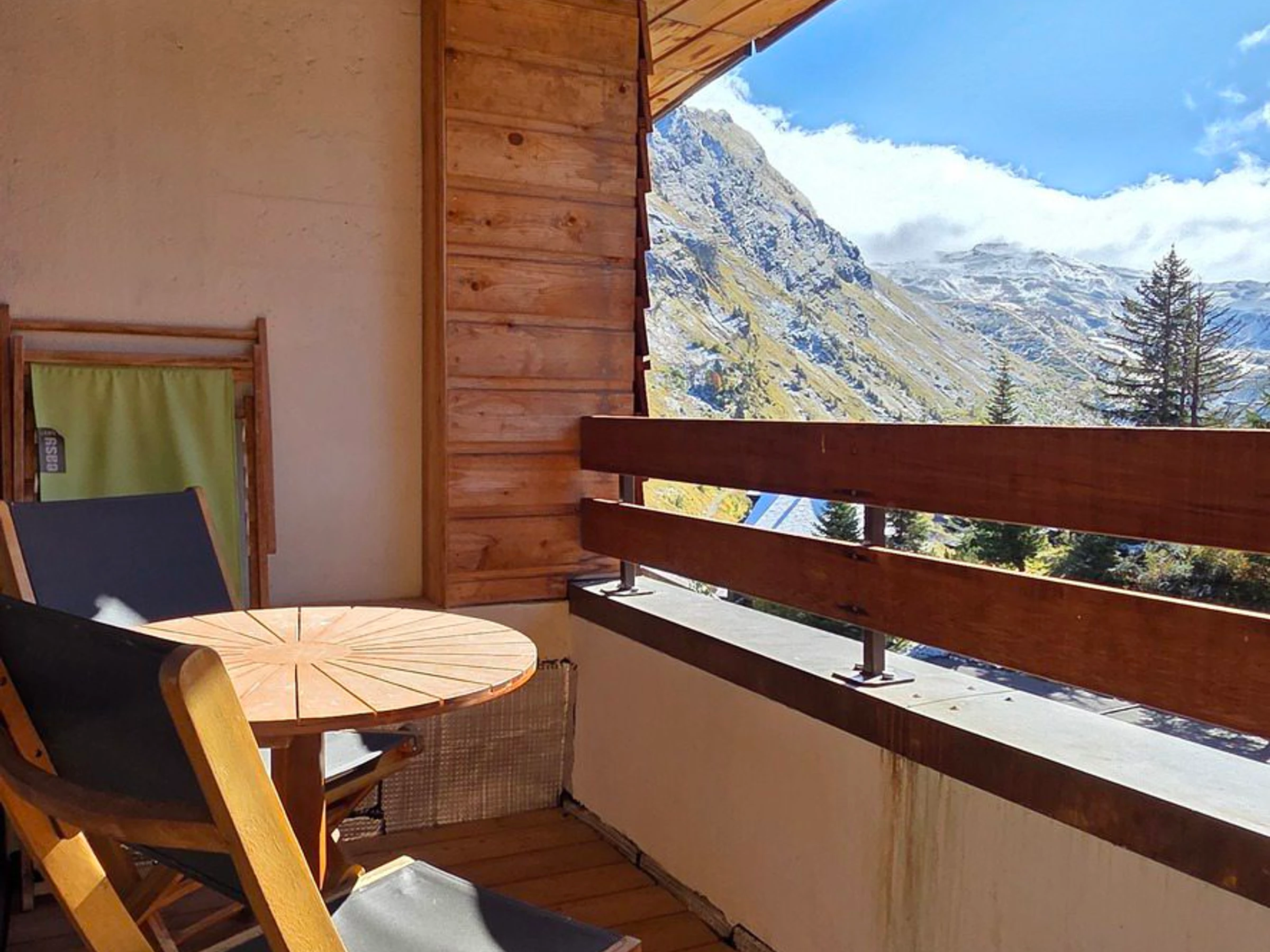 Balcon exposé plein sud avec vue sur le domaine skiable