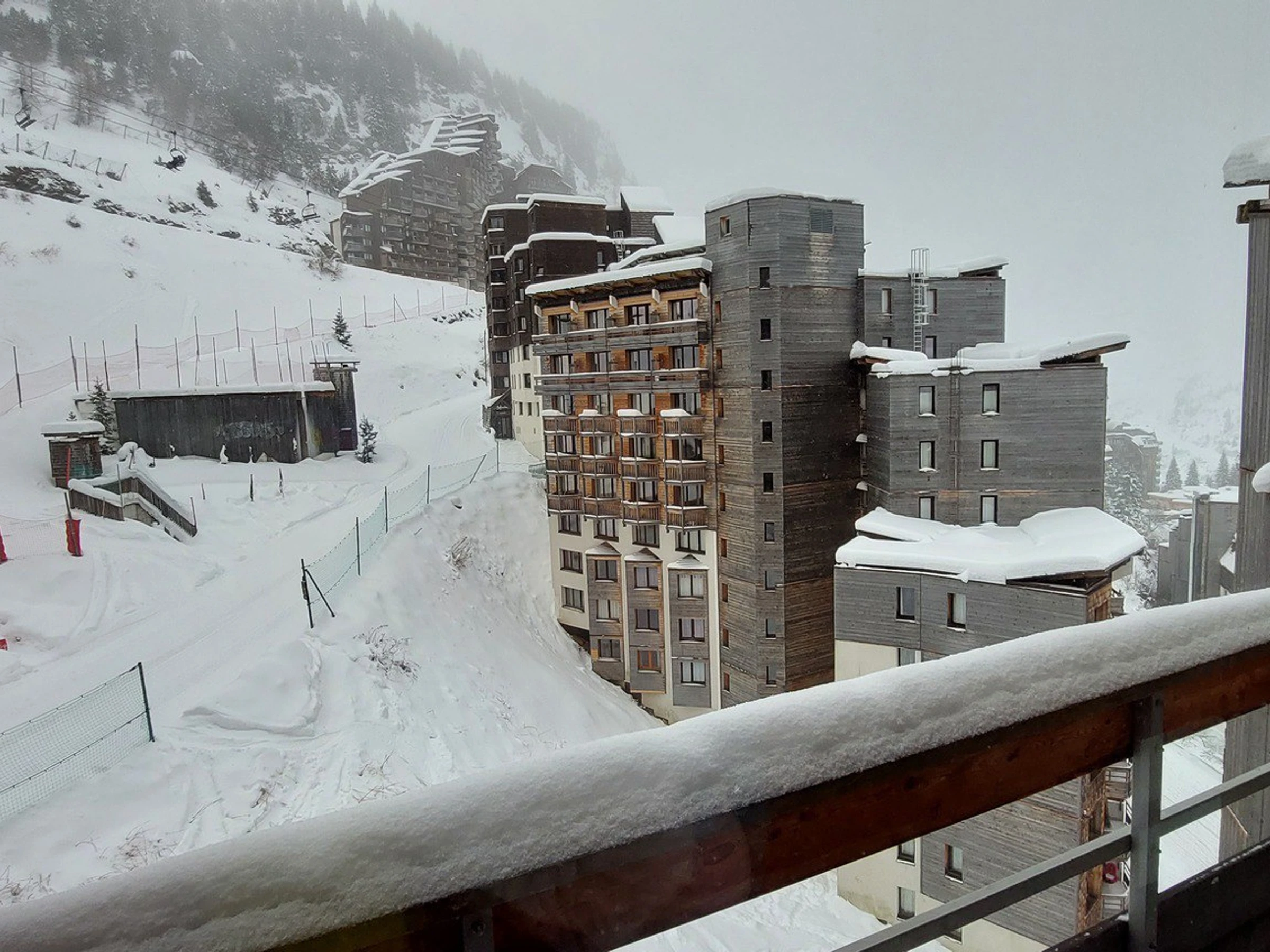 Séjour : avec le coin repas, table et chaises pour 4 personnes, 2 lits simples, un canapé lit et l'accès au balcon. Nombreux rangements