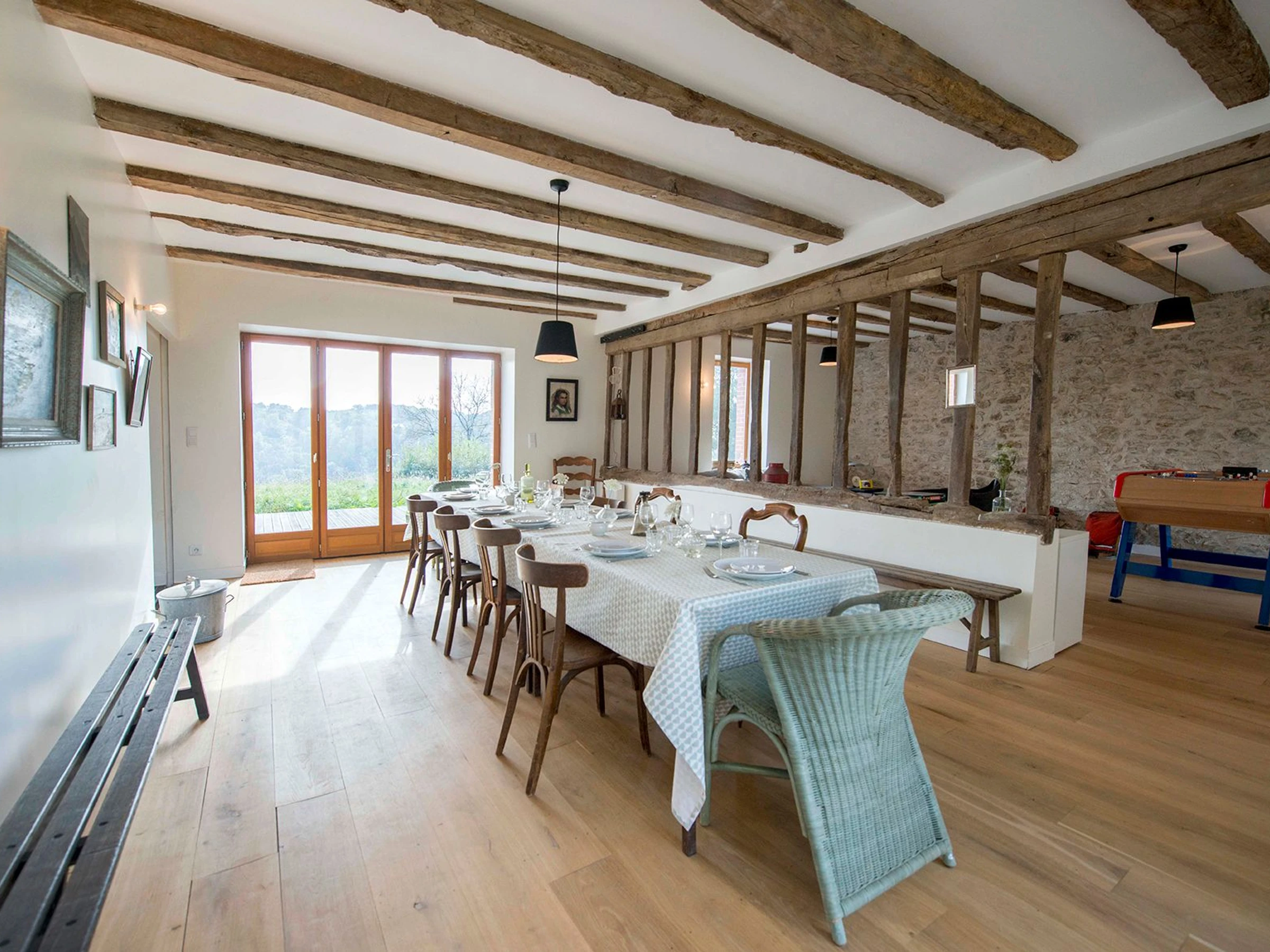 1er gite, au rez-de-chaussée : entrée - salon/salle à manger - cuisine équipée avec coin-repas - wc. A l'étage: 5 chambres (3 lits 2 personnes, 2 lits de 160 cm et 1 lit 1 personne) dont une avec salle d'eau privative et 3 avec vue sur la Boucle du Pin - 2 salles de bain - 2 wc.