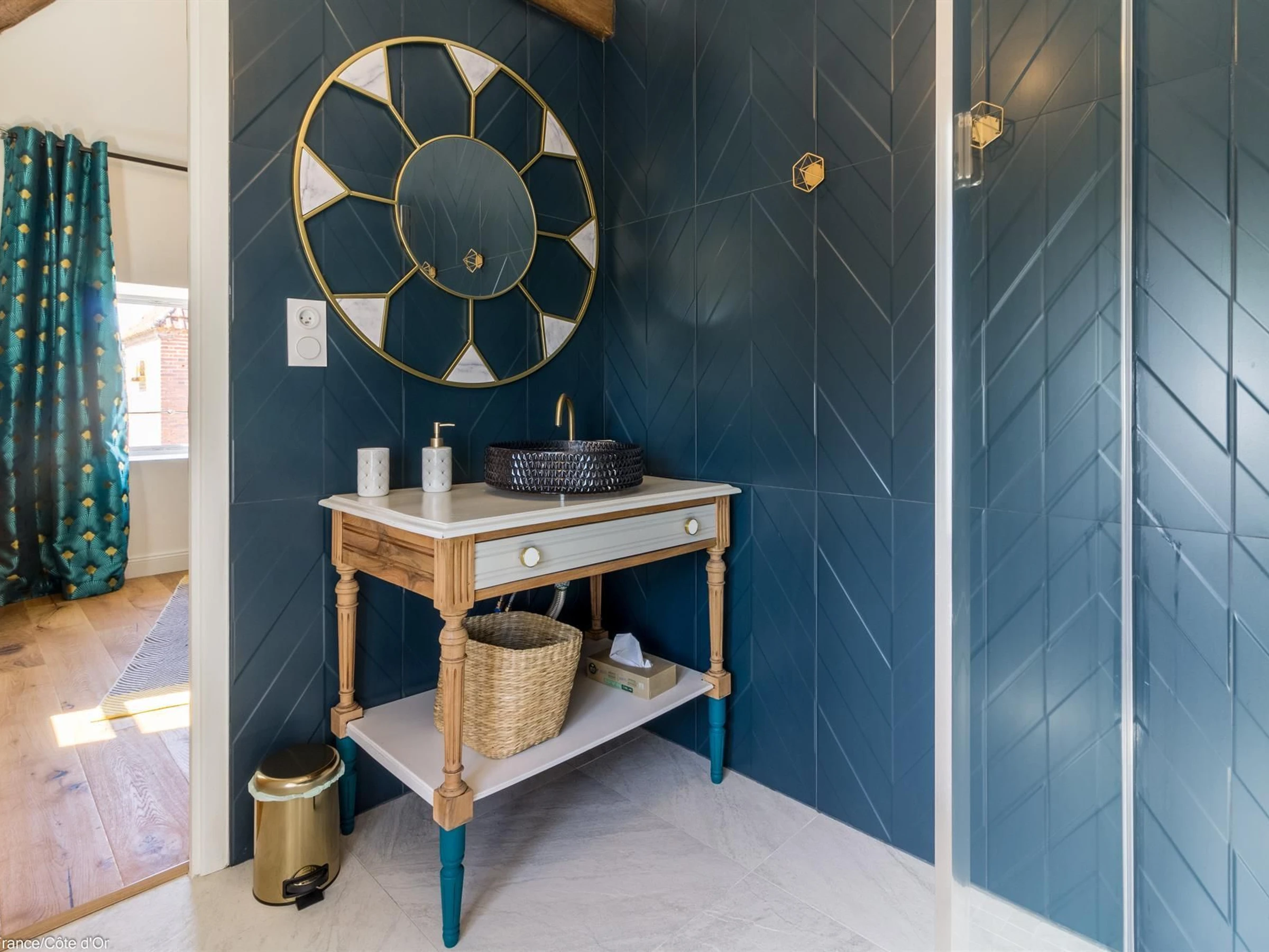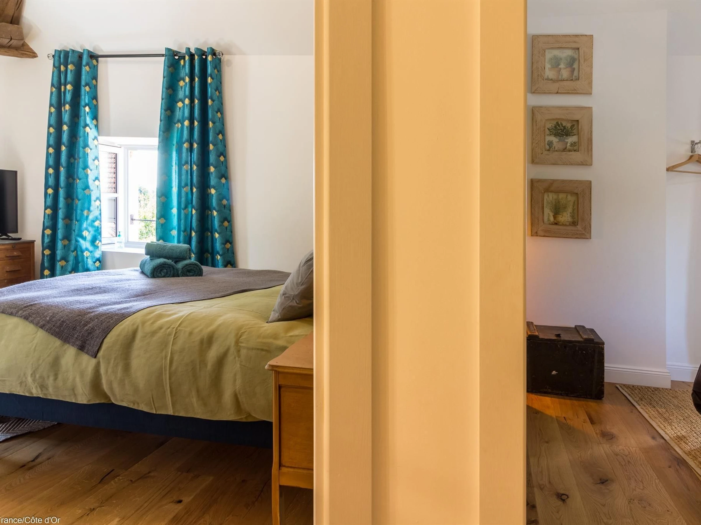 Calme et authenticité sont les maîtres-mots de cette maison d’hôtes située à seulement 15 kilomètres de Nuits saint Georges et de la sortie autoroute. Stationnement fermé et sécurisé sur place. Chambre située au 1er étage dotée d'un lit 160x200cm. Salle d'eau attenante avec toilette. TV écran plat. Jolie vue sur la piscine.
