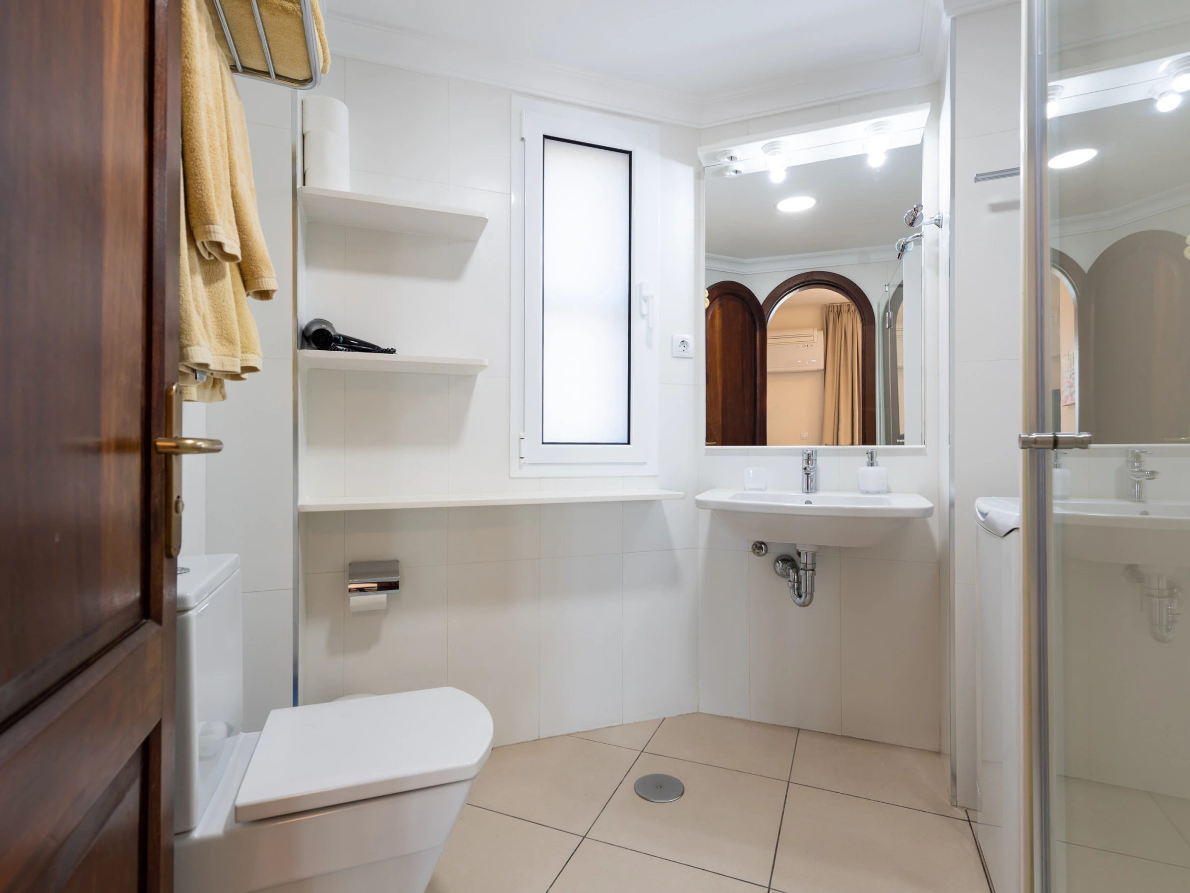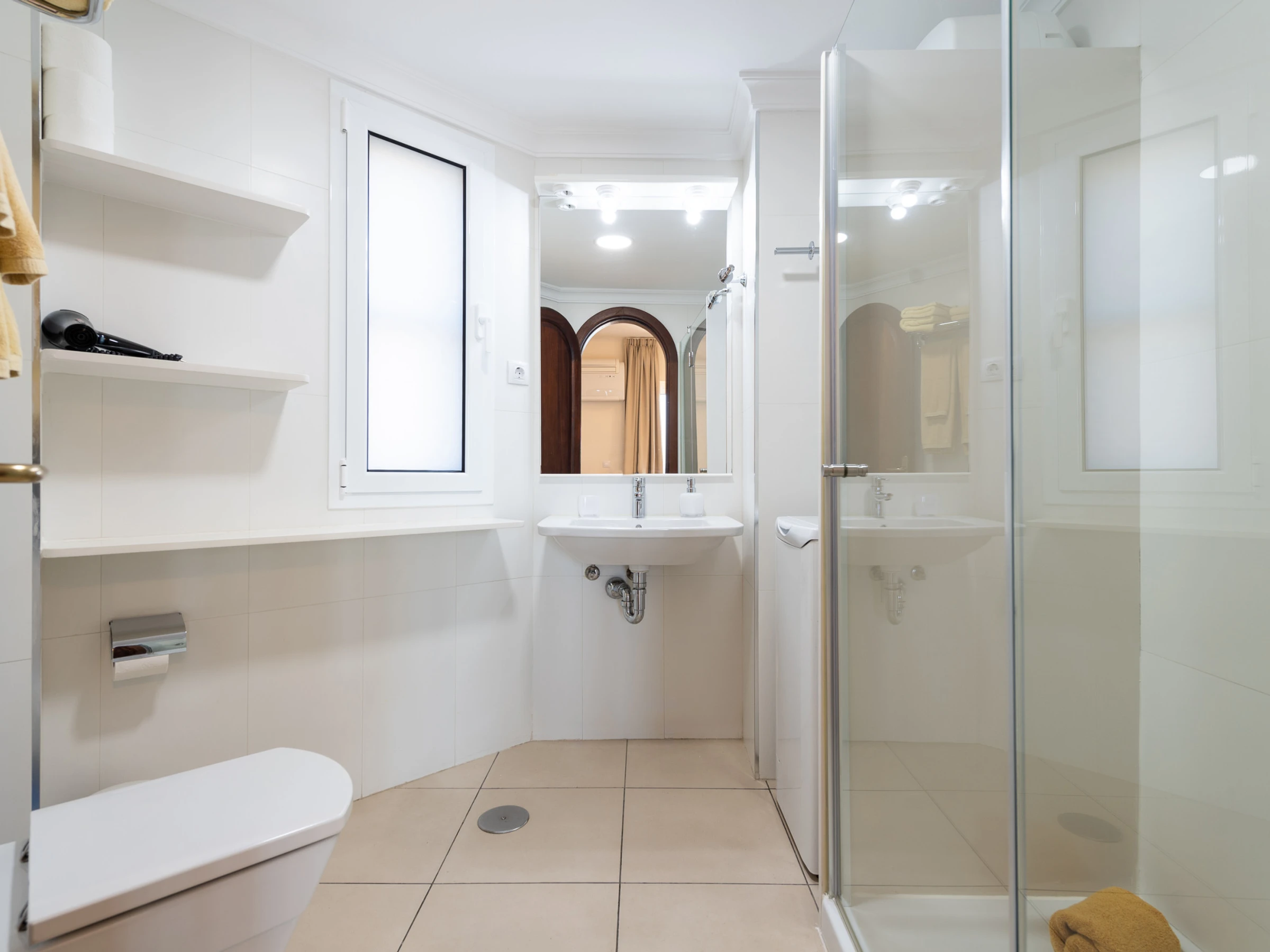 L'appartement dispose de 2 chambres spacieuses avec des lits doubles, ce qui en fait un choix idéal pour les familles ou les couples. De plus, il comprend 1 salle de bain complète avec douche.