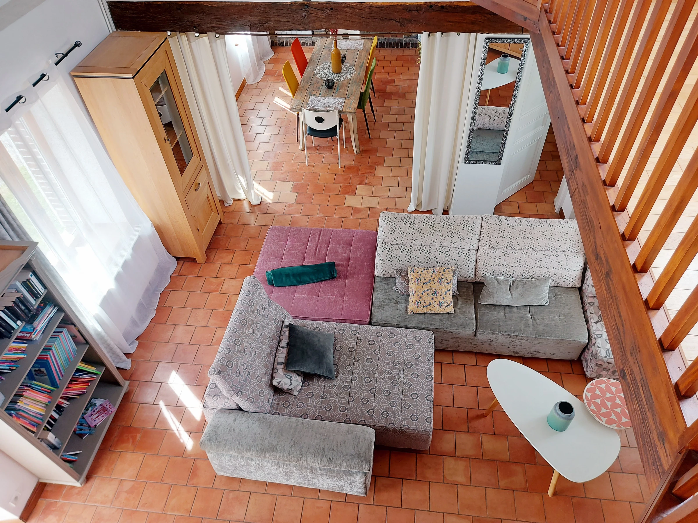 Cette longère est composée d'une belle pièce à vivre avec un poêle à bois, où vous pourrez vous y retrouver pour partager des moments conviviaux.