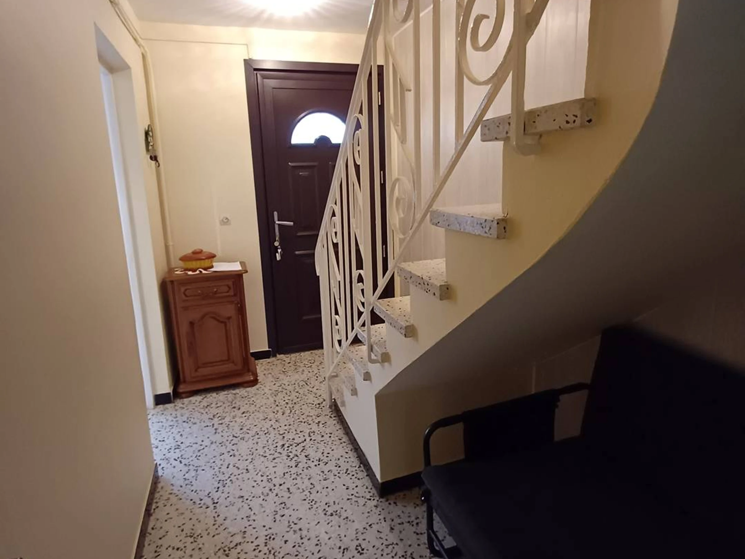 - Au rez-de-chaussée: d'un hall d'entrée, d'une chambre avec un lit simple (90), d'une salle d'eau avec WC et d'une petite cour à l'arrière de 10m².