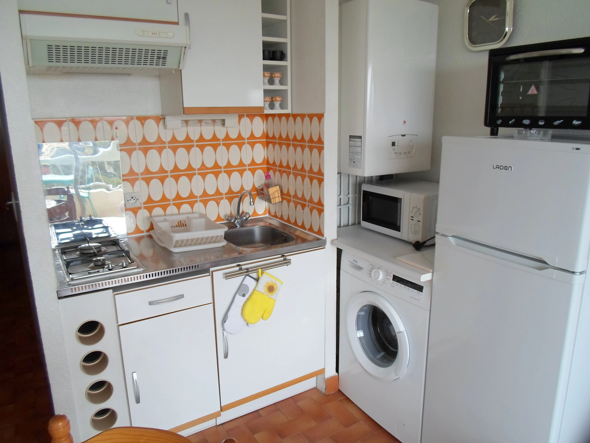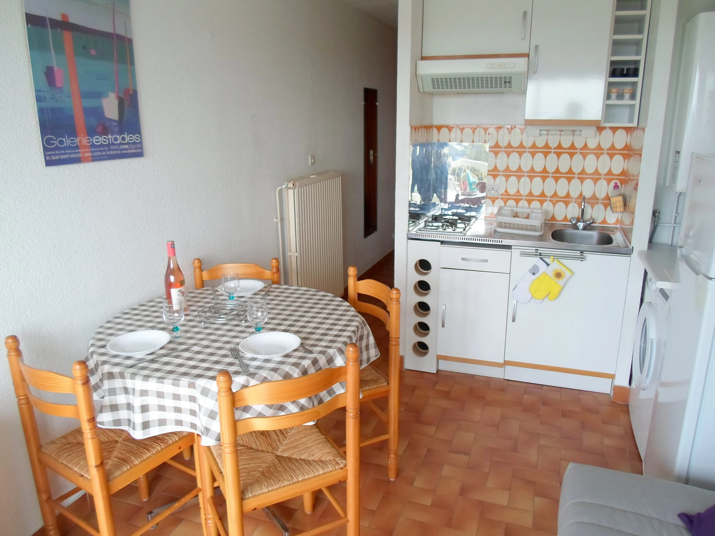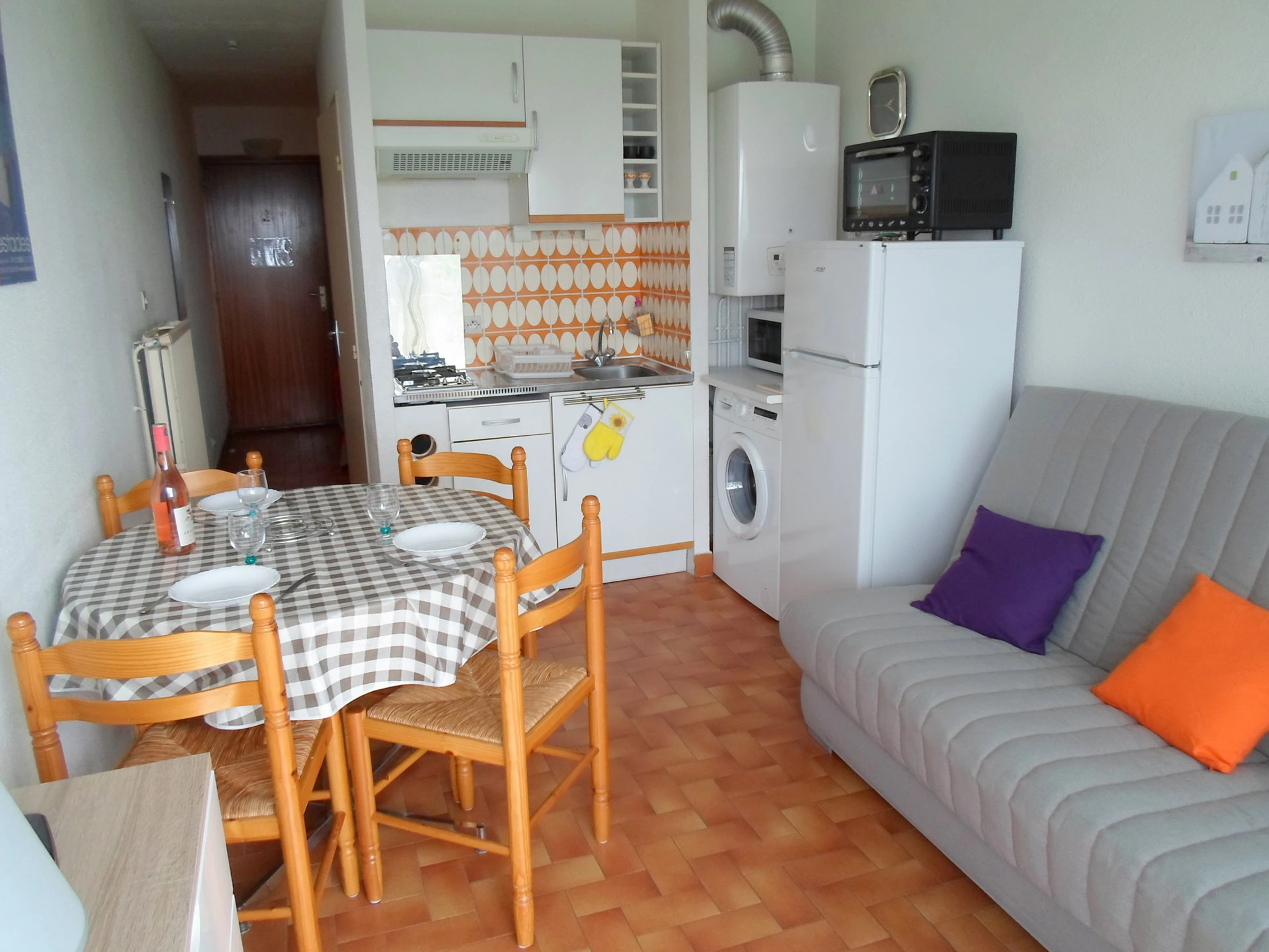 des commerces, découvrez cet appartement de 21m², situé au 5ième étage avec ascenseur et balcon. Comprenant un séjour avec télévision et un canapé, une cuisinette équipée et aménagée avec plaques au gaz, un micro-ondes, un mini-four, un frigo-congélateur et un lave-linge.