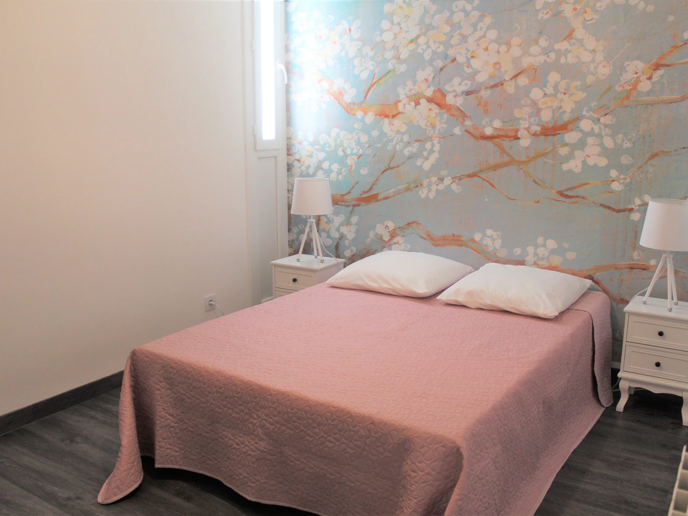 Cet appartement de 80 m² est au 2ème étage sans ascenseur et dispose d'un balcon. Il est classé ⭐⭐⭐ étoiles et orienté Est/Ouest. L'appartement est non-fumeur, non accessible PMR et les animaux ne sont pas admis. Le séjour est équipé d'une télévision et d'un canapé. La cuisine est entièrement équipée avec des plaques vitrocéramiques, un four traditionnel, un micro-ondes, un frigo-congélateur, un lave-vaisselle et un lave-linge. La salle de bains comprend une baignoire et les toilettes sont séparées. La première chambre dispose d'un lit en 140 cm et la seconde chambre de deux lits en 90 cm.