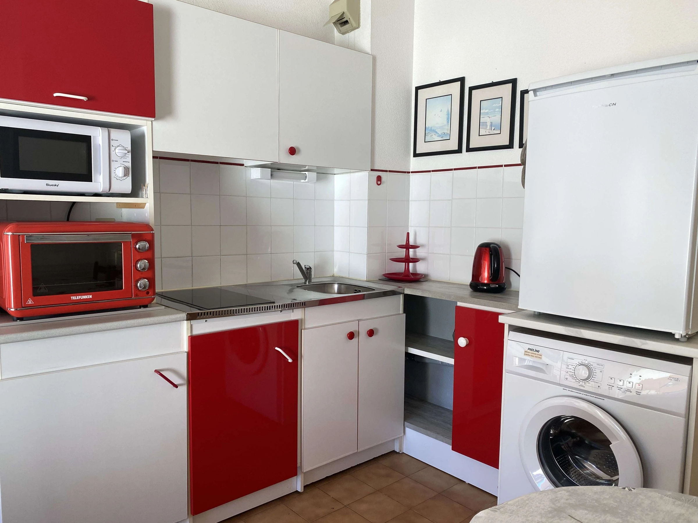 Equipement : Réfrigérateur, micro-ondes, mini four, plaques vitrocéramiques, lave-linge, climatisation.