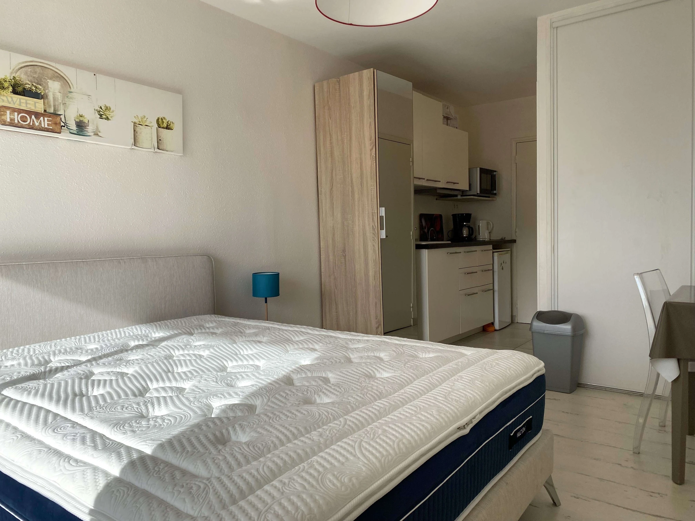 Très beau studio situé au 3ème étage avec ascenseur. Cet appartement dispose d'une belle pièce à vivre très lumineuse avec 1 lit 160x200 (neuf 2026), donnant sur un balcon vue parc Charles De Gaulle, d'un coin cuisine équipé, d'une salle d'eau avec cabine de douche et wc. Logement équipé d'une connexion internet (box internet) et de la climatisation.