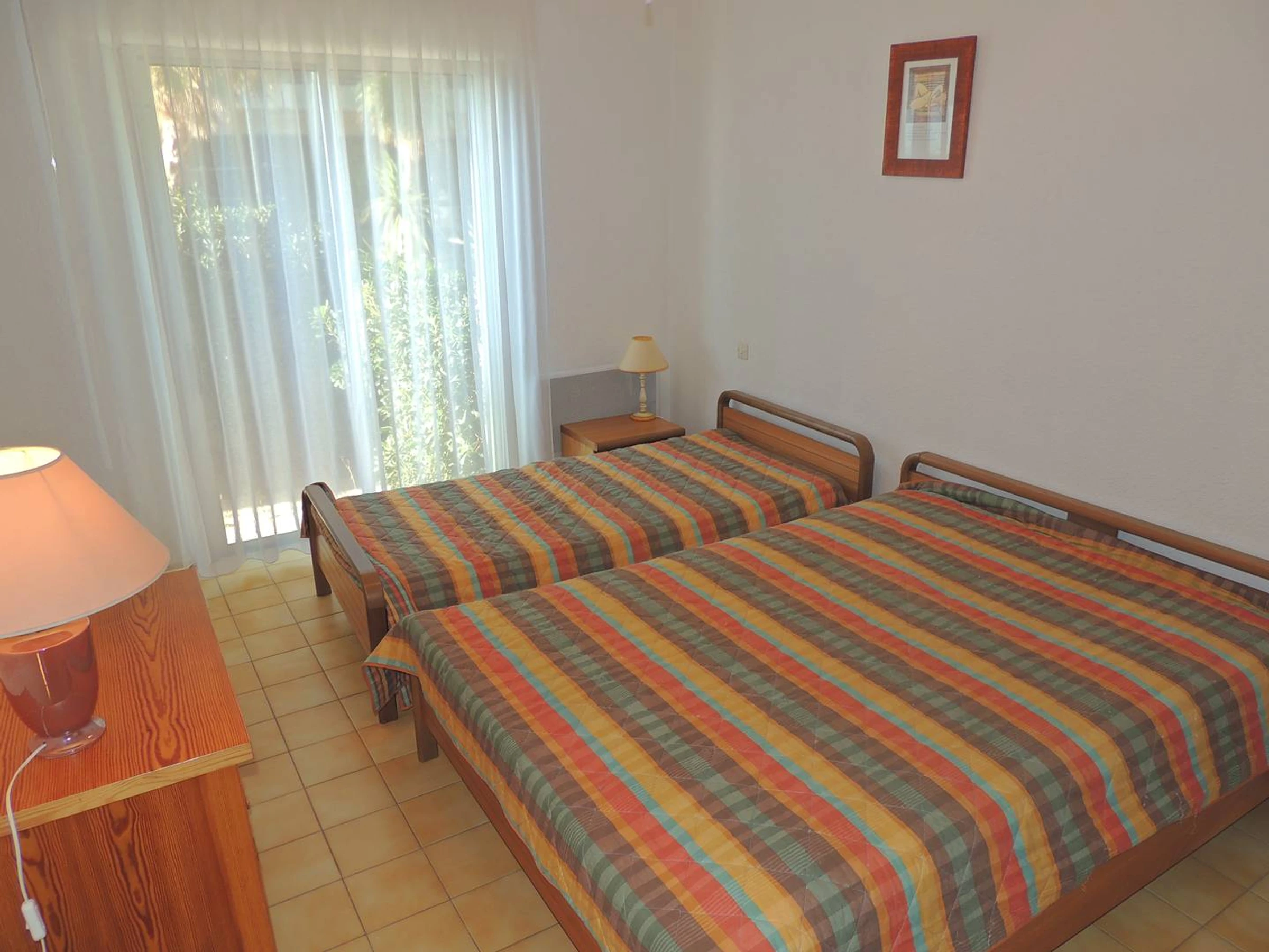 Dans la résidence Sévigné 2, agréable F2 avec place de parking privée (Sur l'avenue Pasteur) situé en rez-de-chaussée avec une vue sur l'étang de Thau et à quelques pas de l'établissement Thermal. Ce logement se compose d'une pièce à vivre avec canapé (convertible), d'une kitchenette équipée, d'une salle d'eau avec WC, d'une chambre avec un lit double (140) et un lit simple (90) , un placard de rangement, et d'une terrasse. Équipements : réfrigérateur/congélateur, plaques vitrocéramiques et hotte, micro-ondes, four, cafetière, grille-pain, bouilloire, mixeur, lave-vaisselle, vaisselles et ustensiles adaptés, télévision, lave-linge, fer et planche à repasser. Couchage 2 à 3 personnes. Consommation d'EDF en sus sur relevé de compteur (au tarif en vigueur au jour de l'arrivée). Logement non-fumeur et non accessible PMR. Animaux admis. Exposition : Sud-Est.