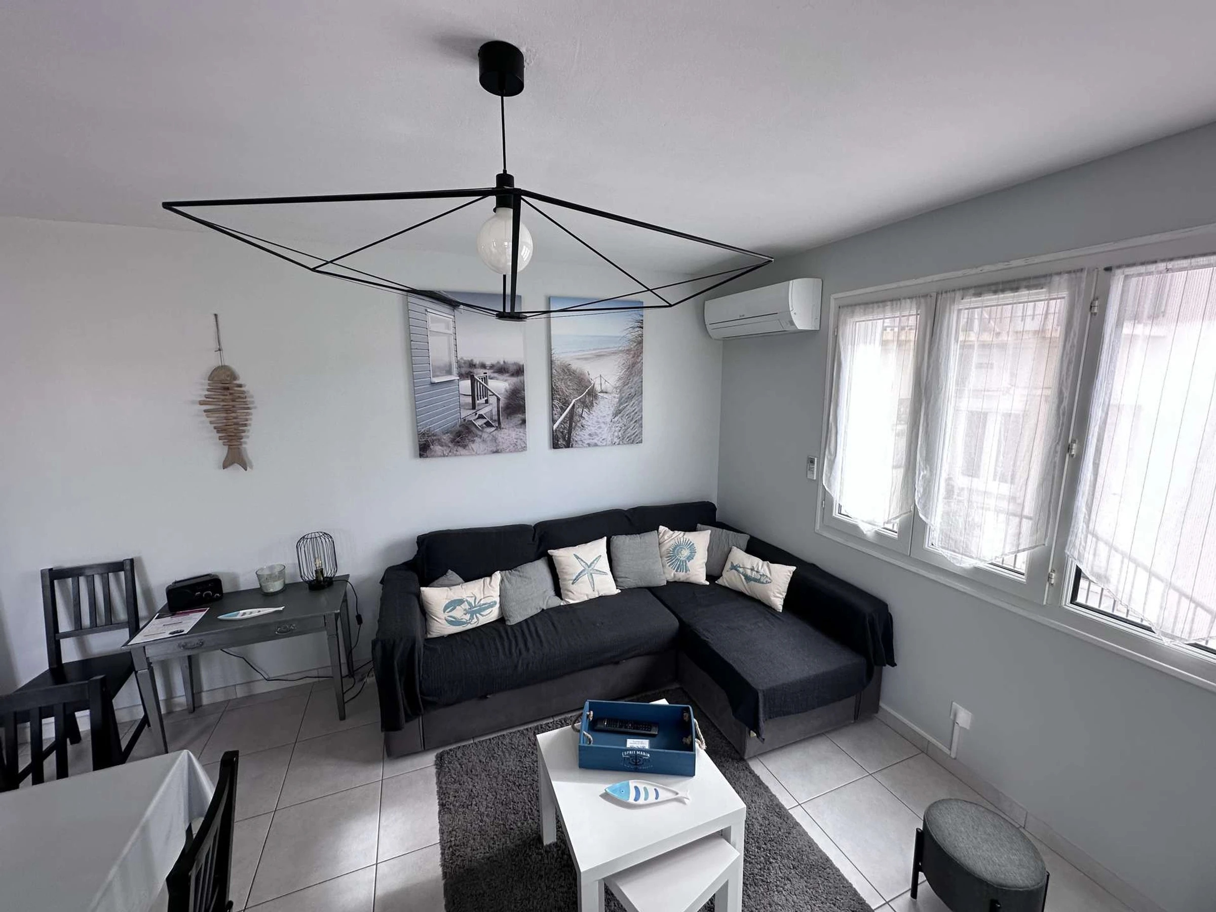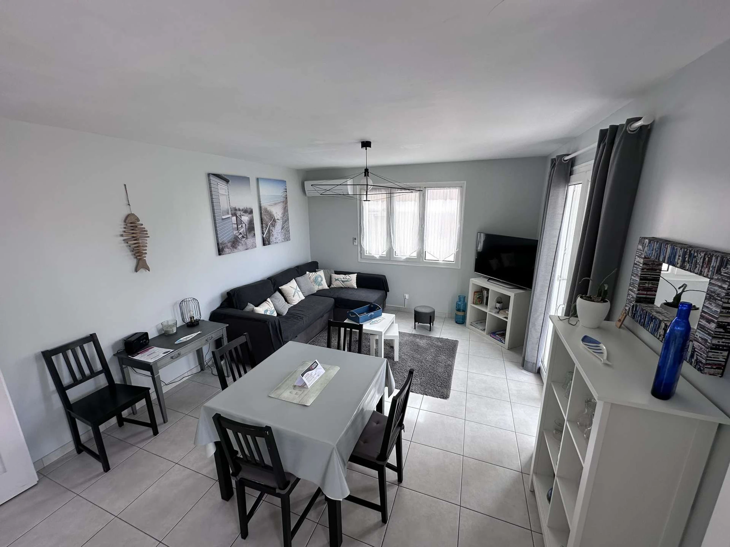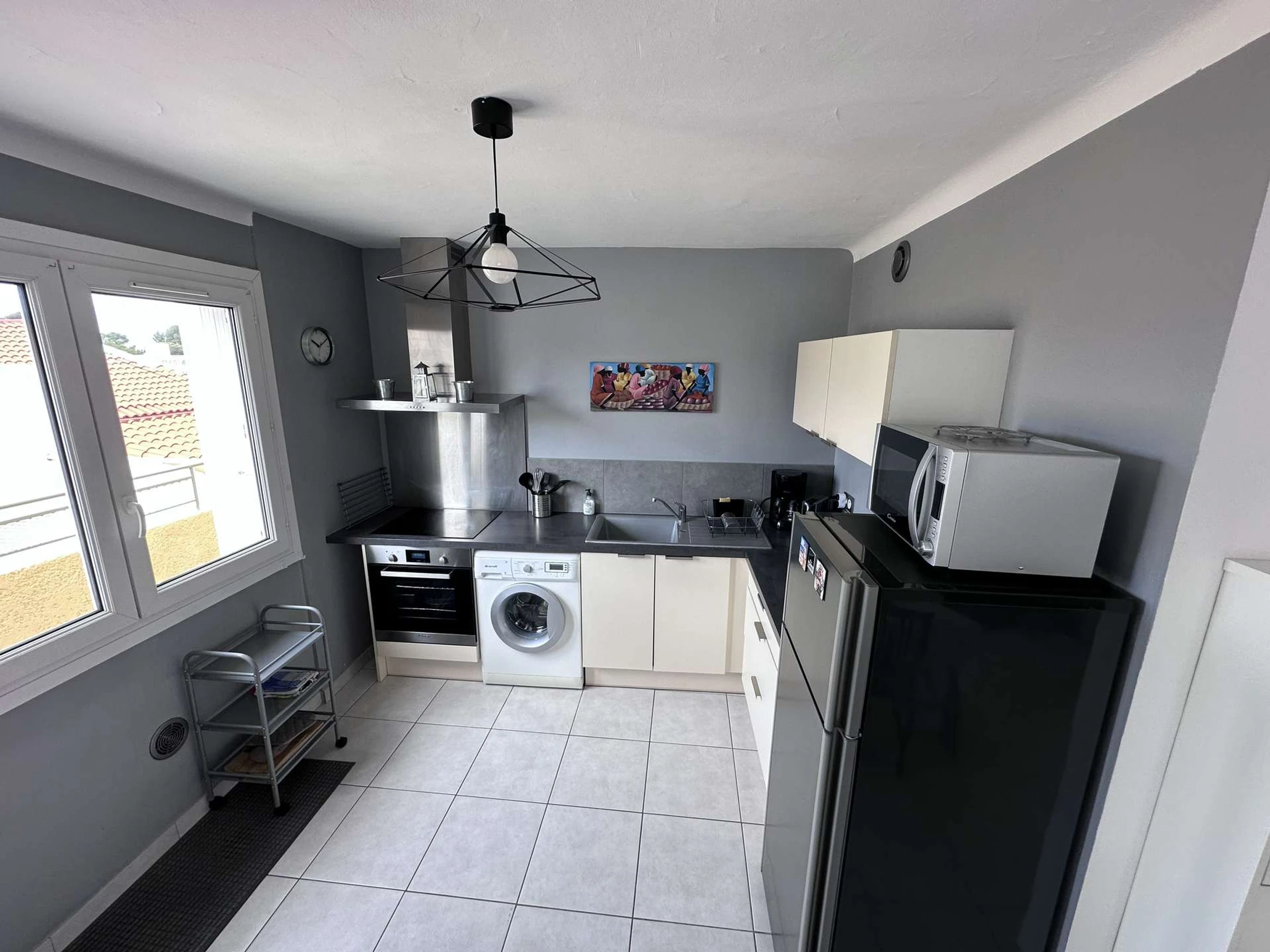 ascenseur avec terrasse de 10m2 (barbecue sur demande). Comprenant un séjour spacieux avec 1 canapé d'angle, télévision à écran blanc, WIFI gratuit, une cuisine équipée et aménagée avec plaques à inductions, un micro-ondes, un four traditionnel, un frigo-congélateur, lave-linge. La salle d'eau est avec douche. Les toilettes sont séparés. Une chambre avec un lit en 140 et une chambre avec 2 lits en 90.