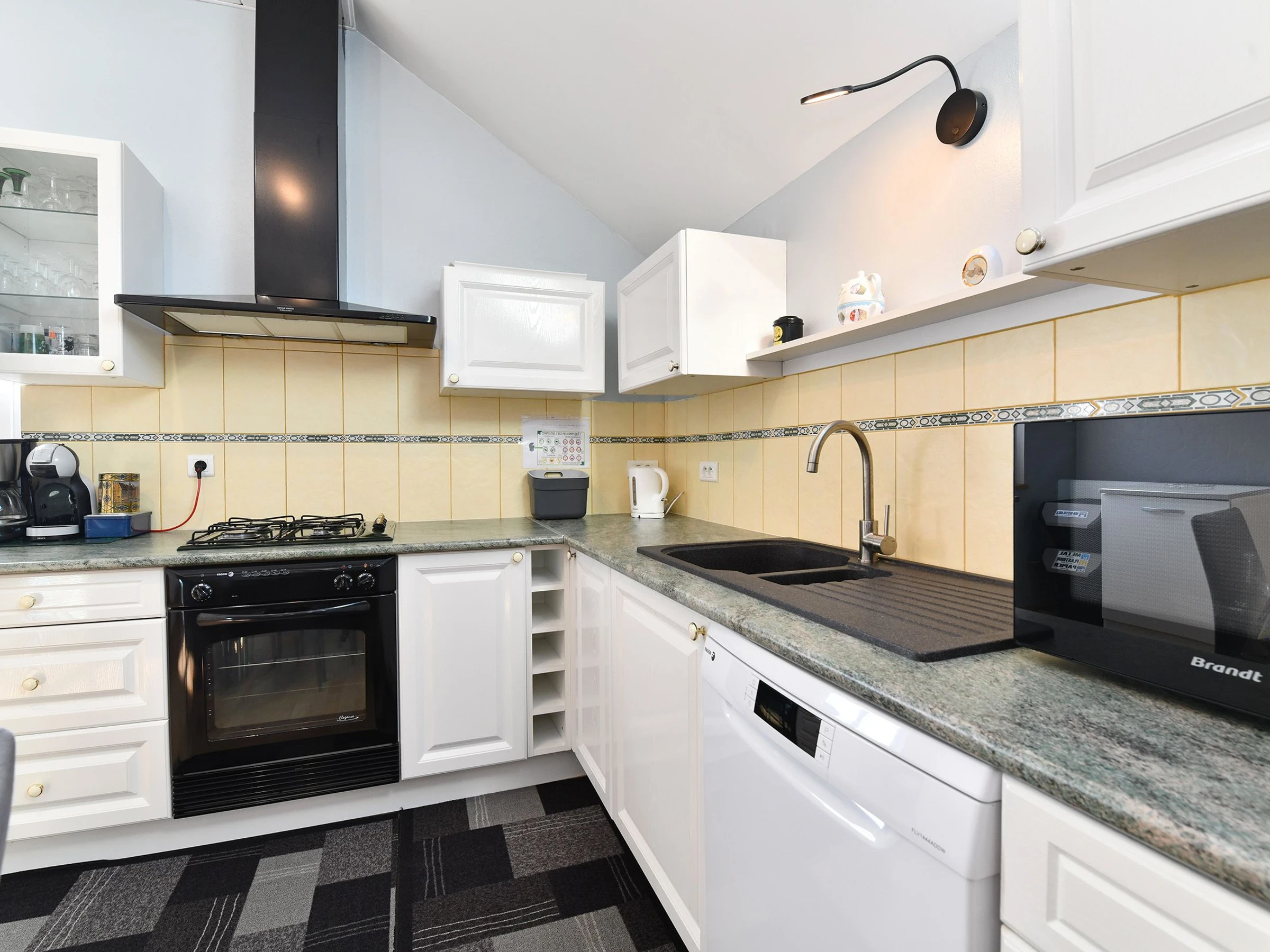 La cuisine toute équipée, est ouverte sur le séjour, qui comprend TV, grand canapé 5 personnes et table basse. Un espace détente/loisir est à votre disposition, avec billard hollandais (Schoelbak) fait maison, et un coin lecture/musique doté d'un confortable fauteuil.