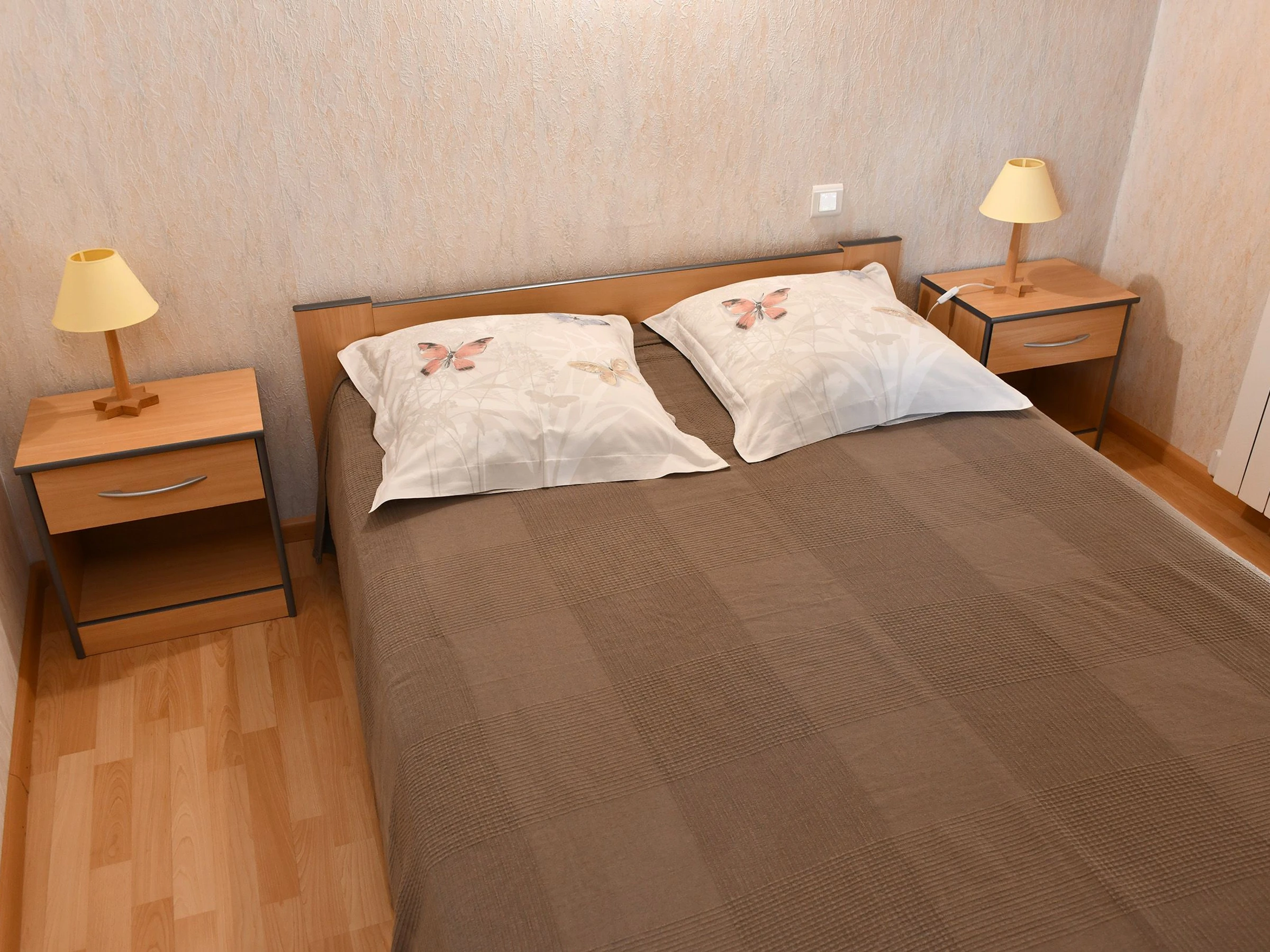 A l'étage, la partie nuit est composée de deux chambres doubles avec lits de 140x190cm, armoire et chevets,