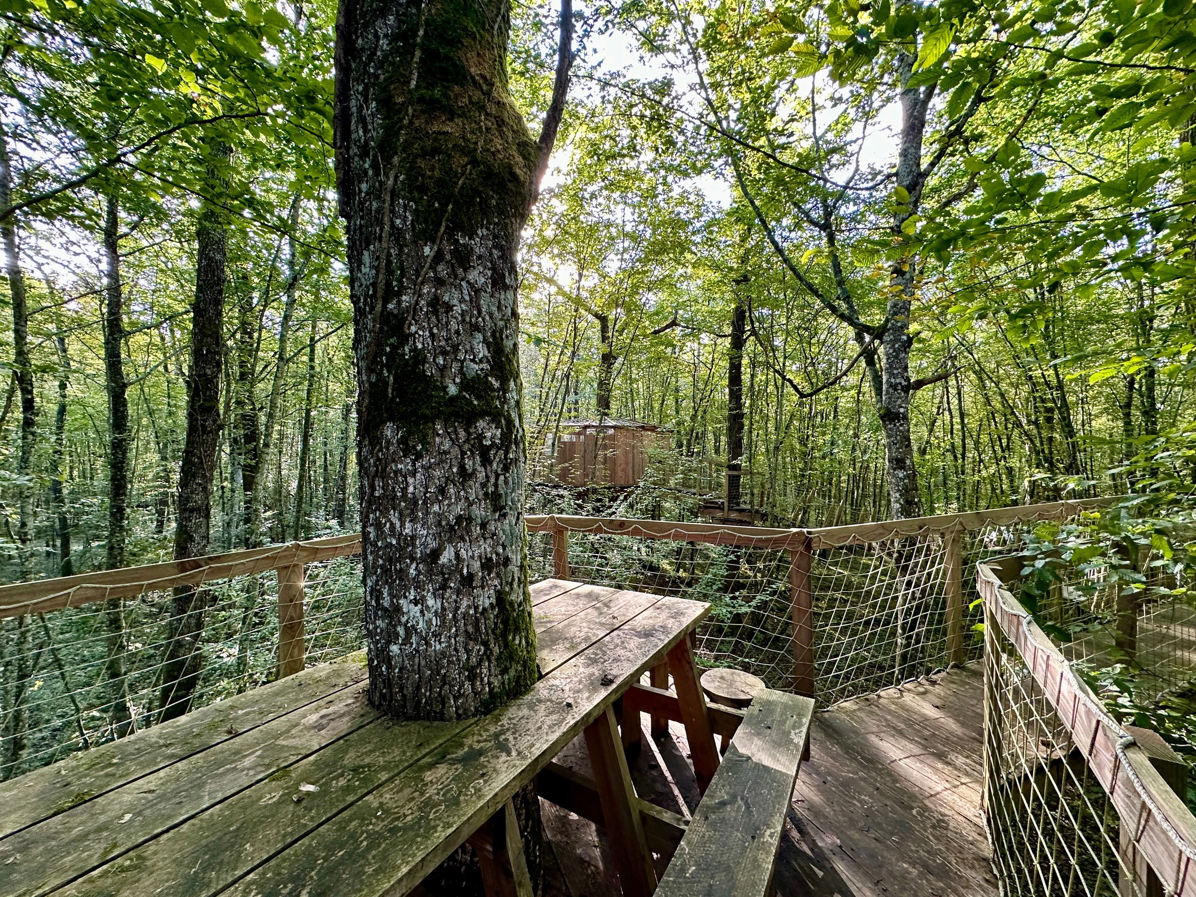 Partez à l'ascension de vos cabanes, qui révèlera tout son charme à la nuit tombée. Les cabanes sont sans électricité ni chauffage. A l'esprit romantique et originale avec sa décoration tout à base de bois.