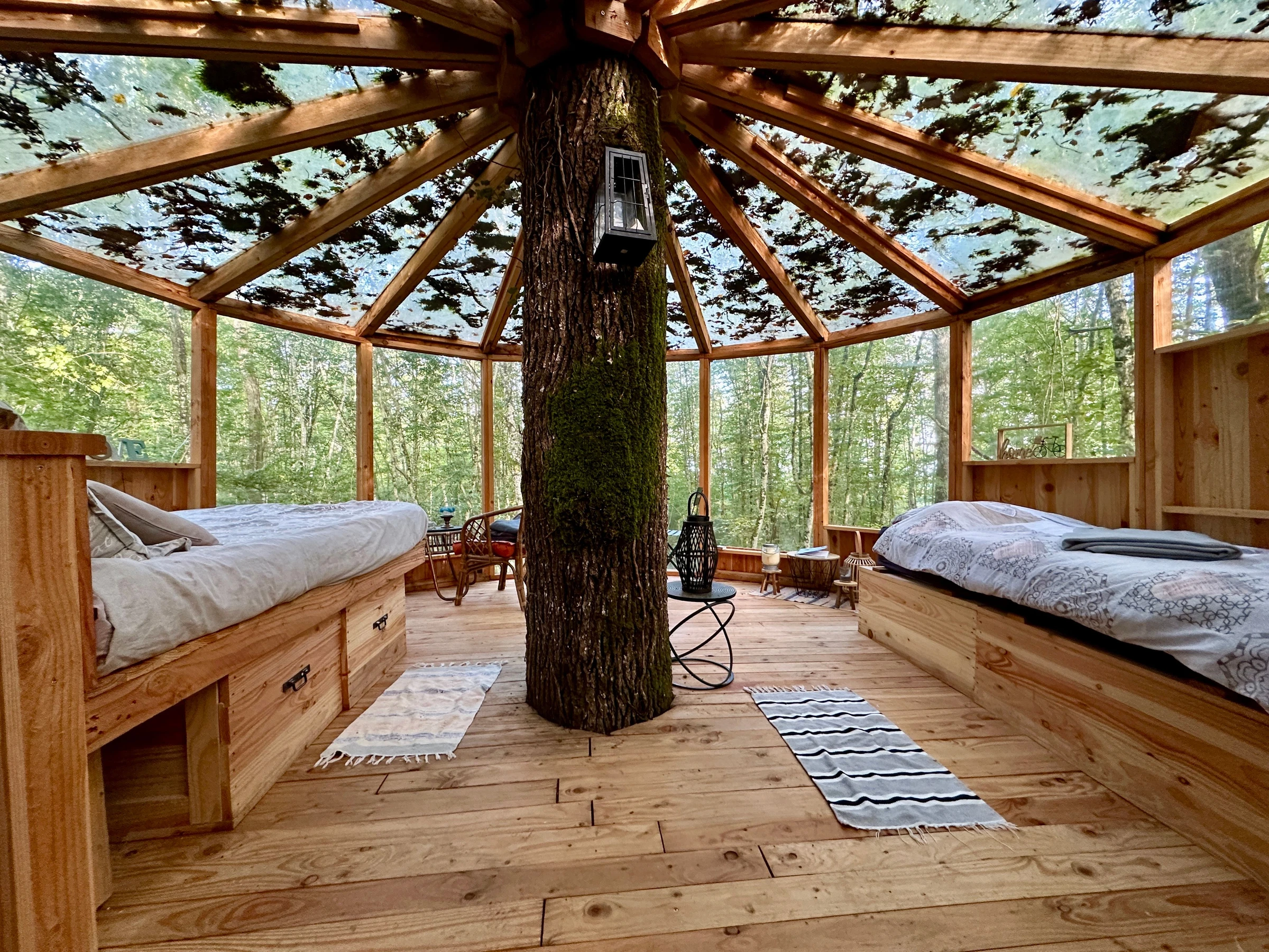 Expérience insolite à vivre pour les amoureux de la nature. Accès au gîte par un petit chemin blanc de forêt. Possibilité de paniers petit-déjeuner (10€).
