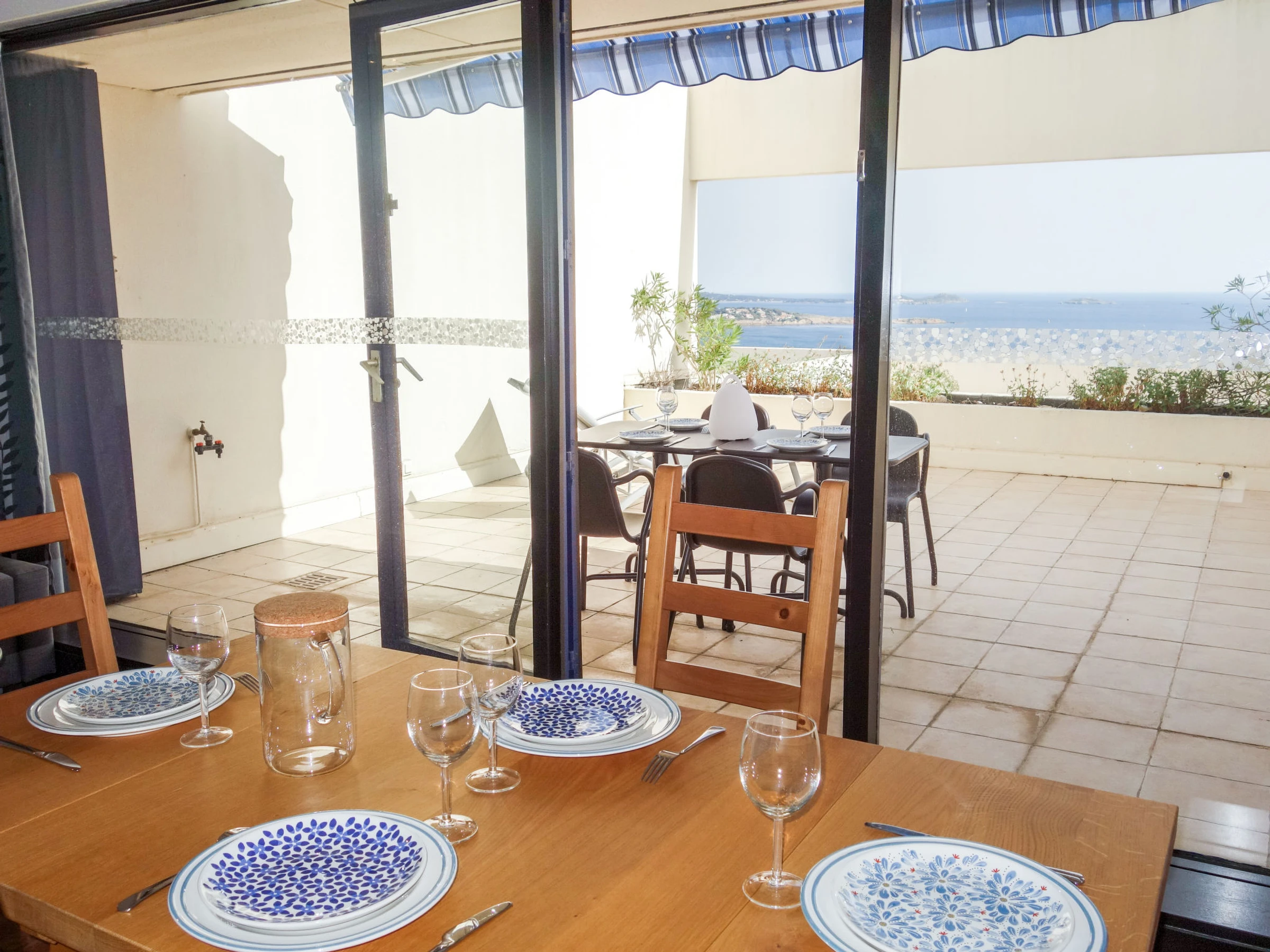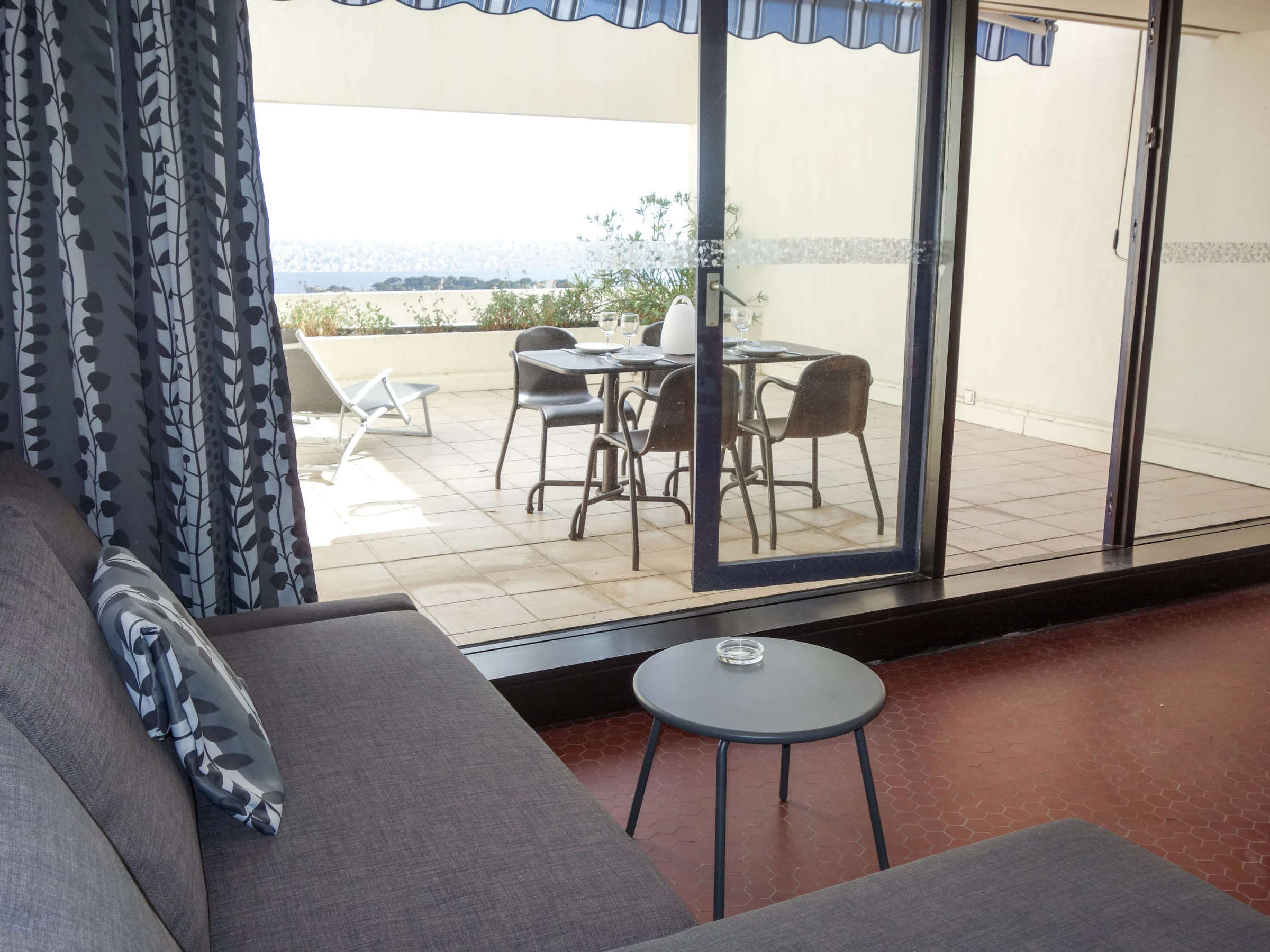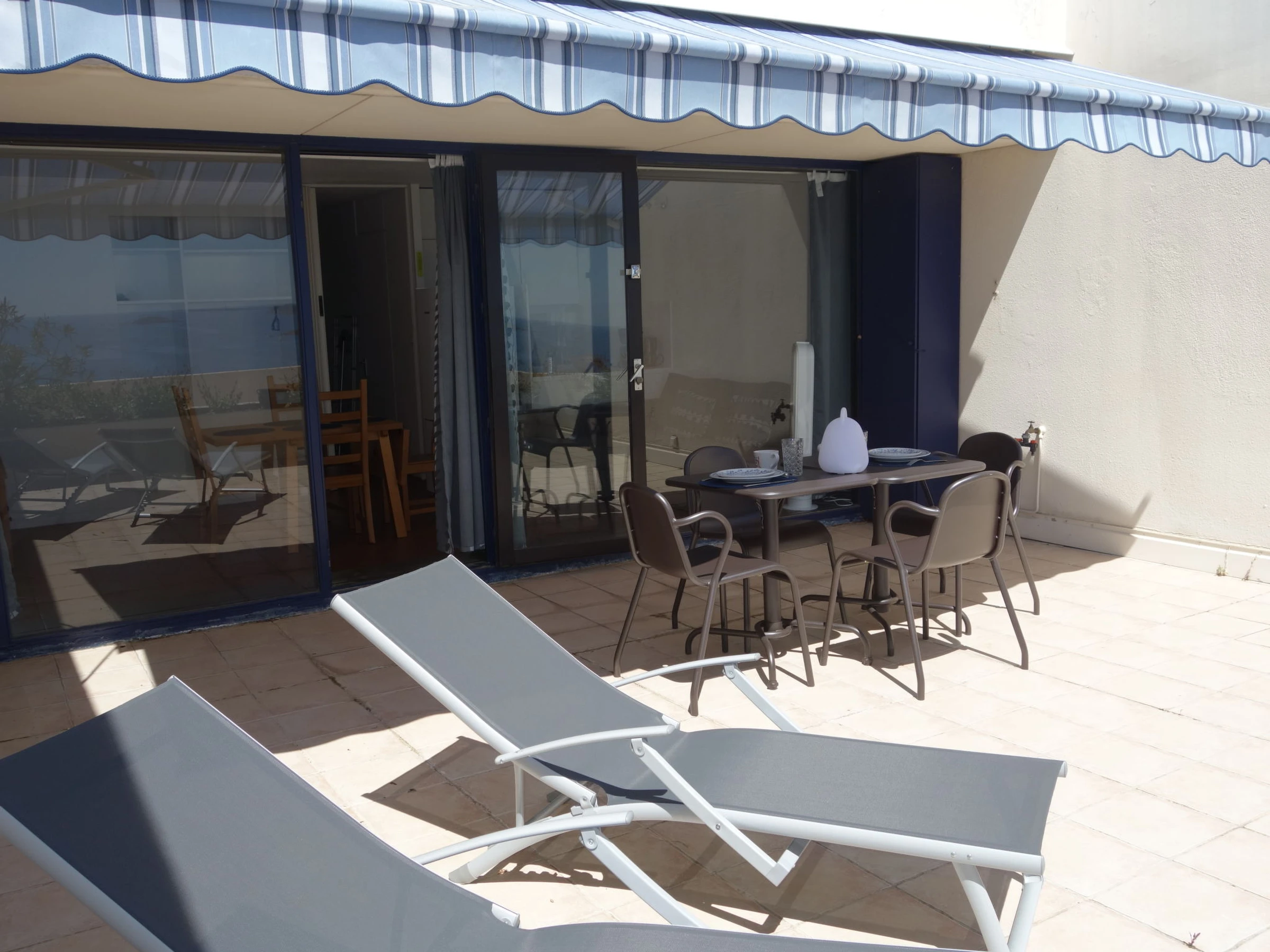 Apt 2 pièces 37 m2 au 2ème étage, situation sud. Aménagement confortable et agréable: séjour/salle à manger avec 1 divan-lit double (160 cm, longueur 200 cm), TV (écran plat), ventilateur. Sortie sur la terrasse. 1 chambre avec porte coulissante avec 1 grand-lit (140 cm, longueur 190 cm). Coin cuisine (four, 4 plaques vitrocéramiques, four micro-ondes, congélateur, cafetière électrique). Douche/WC. Chauffage électrique. Grande terrasse 28 m2, situation sud. Meubles de terrasse. Vue panoramique sur la mer. A disposition: lave-linge, fer à repasser. Internet (Connexion WIFI, en sus). Garage (1 Voiture), hauteur 210 cm, largeur 234 cm. Veuillez noter: TV seulement FR. Détecteur de fumée. [hidden]