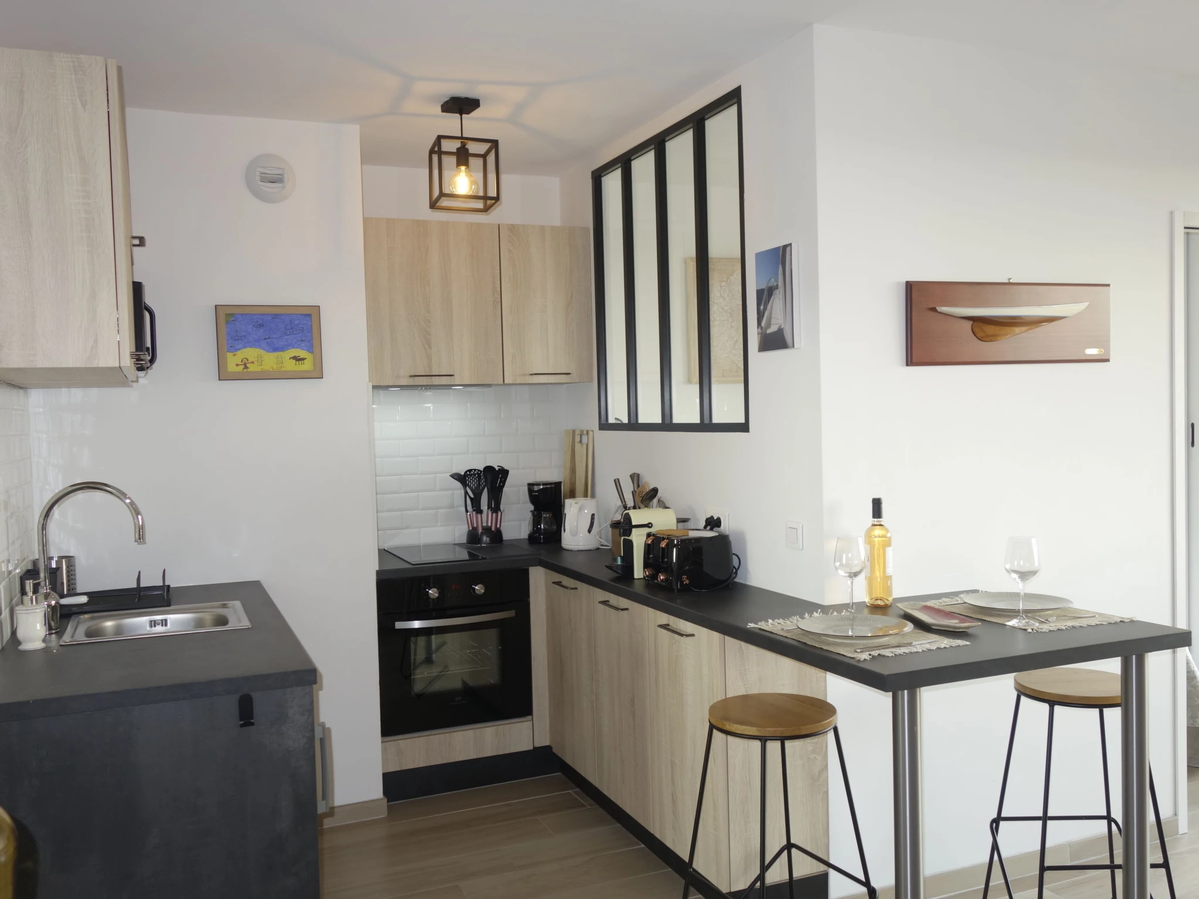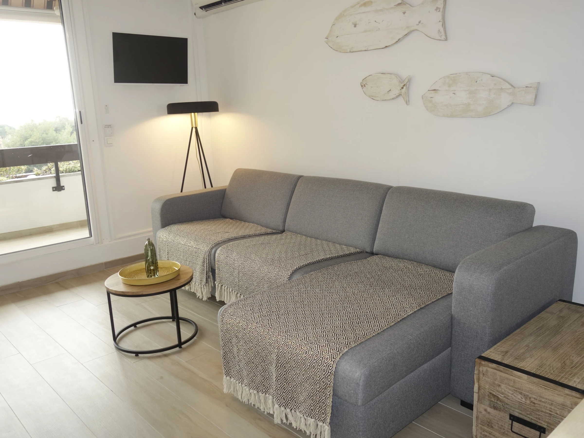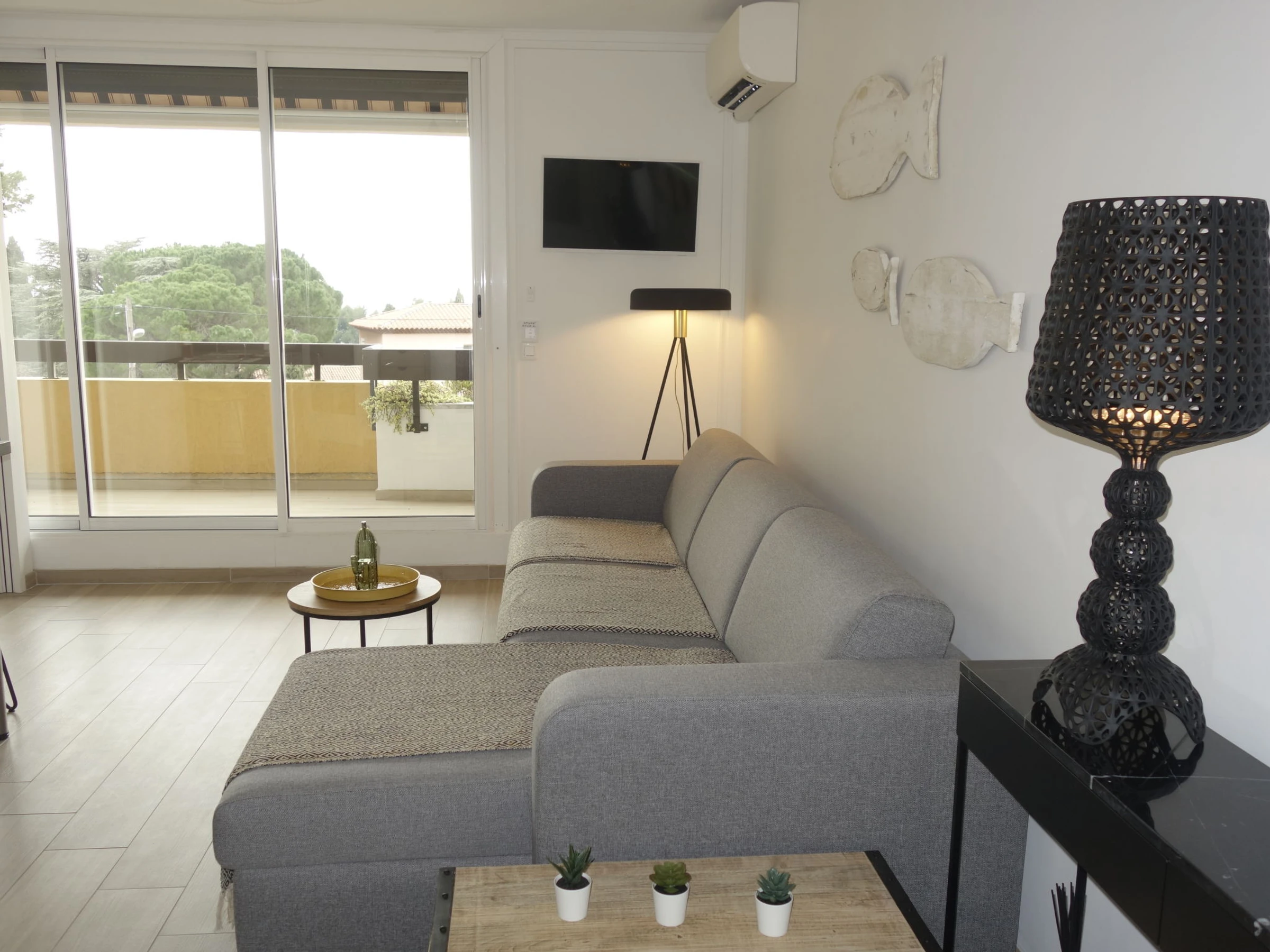 Apt 2 pièces 30 m2 au 2ème étage. Clair, complètement rénové en 2019, aménagement confortable et agréable: séjour/salle à manger avec 1 divan-lit double (1 x 140 cm, longueur 190 cm), TV (écran plat), air-conditionné. Sortie sur la terrasse. 1 petite chambre avec 1 grand-lit (140 cm, longueur 190 cm). Sortie sur la terrasse. Coin cuisine (four, lave-vaisselle, 2 plaques vitrocéramiques, grille-pain, bouilloire électrique, cafetière électrique, Capsules pour machine à café (Nespresso) (NON INCLUSES)). Douche/WC. Chauffage à air chaud. Terrasse 10 m2, couverte, situation sud. Meubles de terrasse, barbecue électrique. Vue éloignée sur la mer. A disposition: lave-linge. Internet (Connexion WIFI, en sus). Place de parking (1 Voiture). Veuillez noter: détecteur de fumée. [hidden]