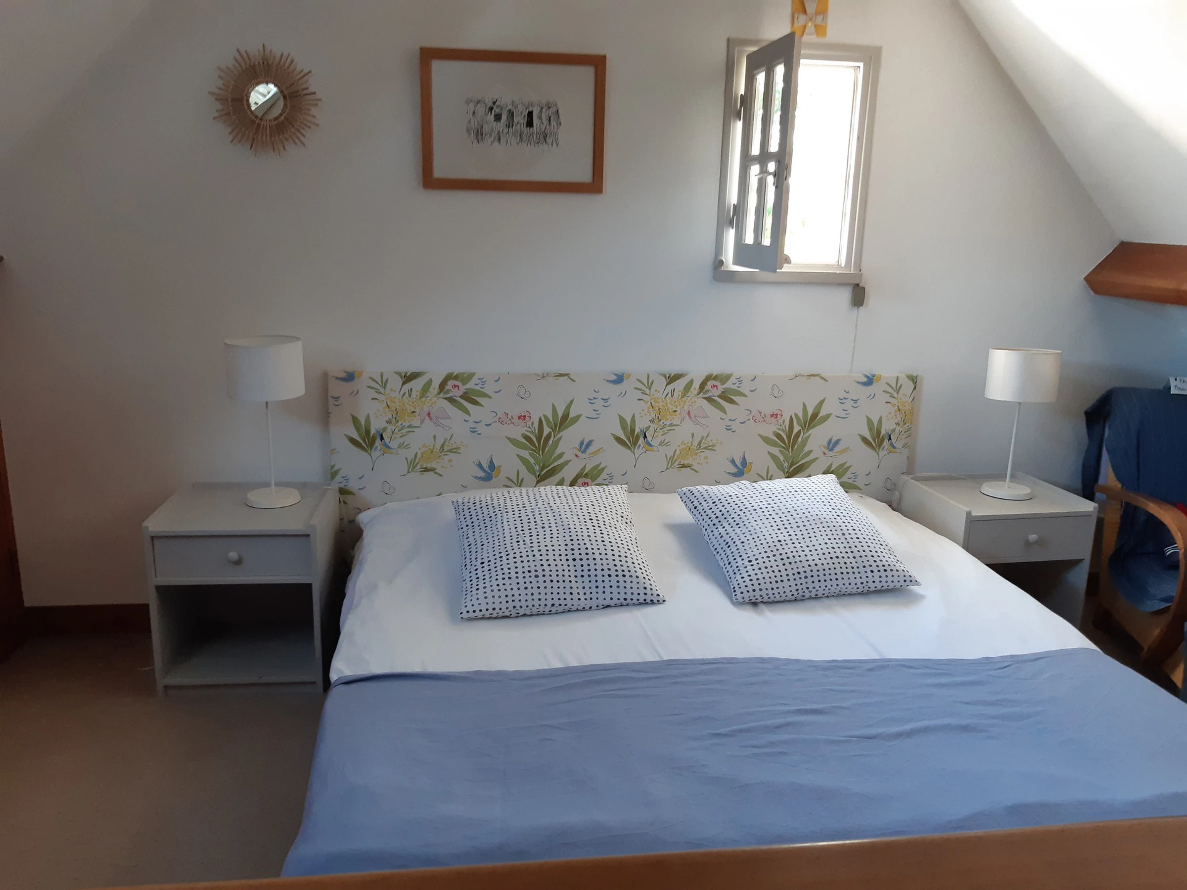 - Une chambre (13 M²) avec 2 lits en 80 X 190 cm accolés.