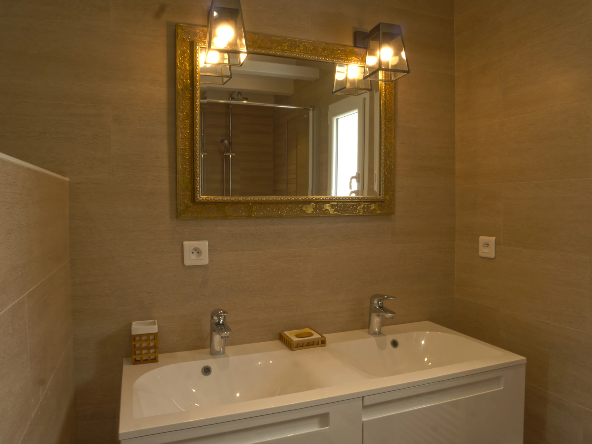 - Une salle d'eau ( 6.5m²) avec douche large, deux vasques et WC, lave-linge et sèche-linge