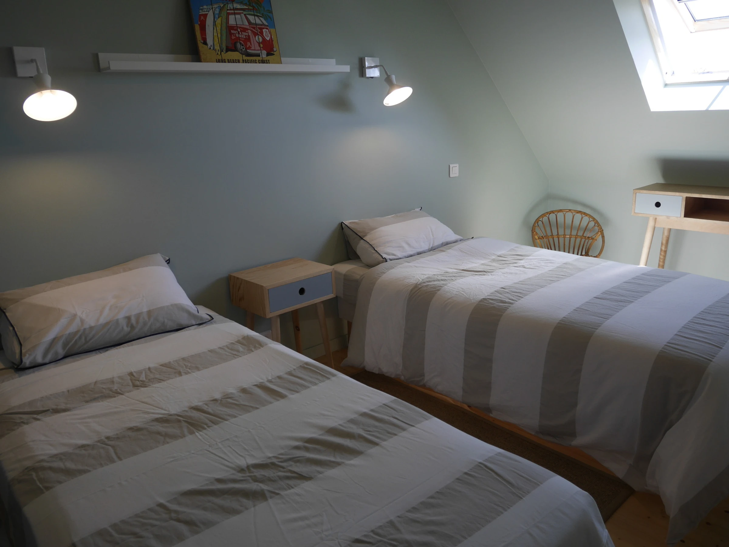 - Une chambre ( 14 m²) avec 2 lits en 90 x190 cm et un bureau.