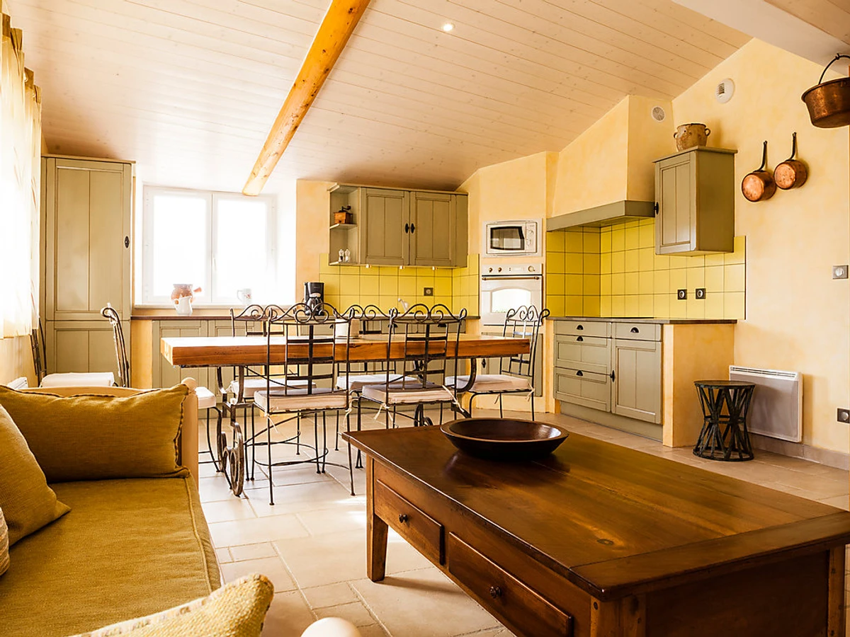 Redortiers à 13 km de Banon: Domaine "Aubignane Le Mas des Oliviers", du 19ème siècle, renové en 2011, environné par les arbres et champs. 7 maisons dans le même complexe de vacances. En-dehors de la localité, situation isolée sur une colline, dans la verdure. En commun: parc 350 ha (clôturé), jardin entretenu, 2 ha (clôturé) avec pelouse et arbres, piscine rectangulaire (15 x 8 m, profondeur 100 - 160 cm, 15.05.-15.09.) avec marches intérieures. Terrain de pétanque, tonnelle (20 m2), terrasse. Infrastructures de la Maison: lave-linge, sèche-linge (en commun, en sus). Petit-déjeuner possible sur demande (en sus). Accès en voiture jusqu'à 200 m de la maison (chemin non goudronné). En hiver, merci de prévoir des chaînes. Place de parking sur le terrain. Magasins 13 km, supermarché 15 km, restaurant 13 km, bar 6 km, gare ferroviaire "Avignon". Attractions à proximité: Sault 30 km, Apt 40 km, Manosque 45 km, Carpentras 70 km, Avignon 95 m, Parc Naturel Régional du Lubéron. Veuillez noter: voiture recommandée. Adapté(e) aux familles, équipement pour bébés sur demande (inclus). Animaux dans le voisinage. D’autres appartements sont également proposés à la location dans cette maison de vacances.