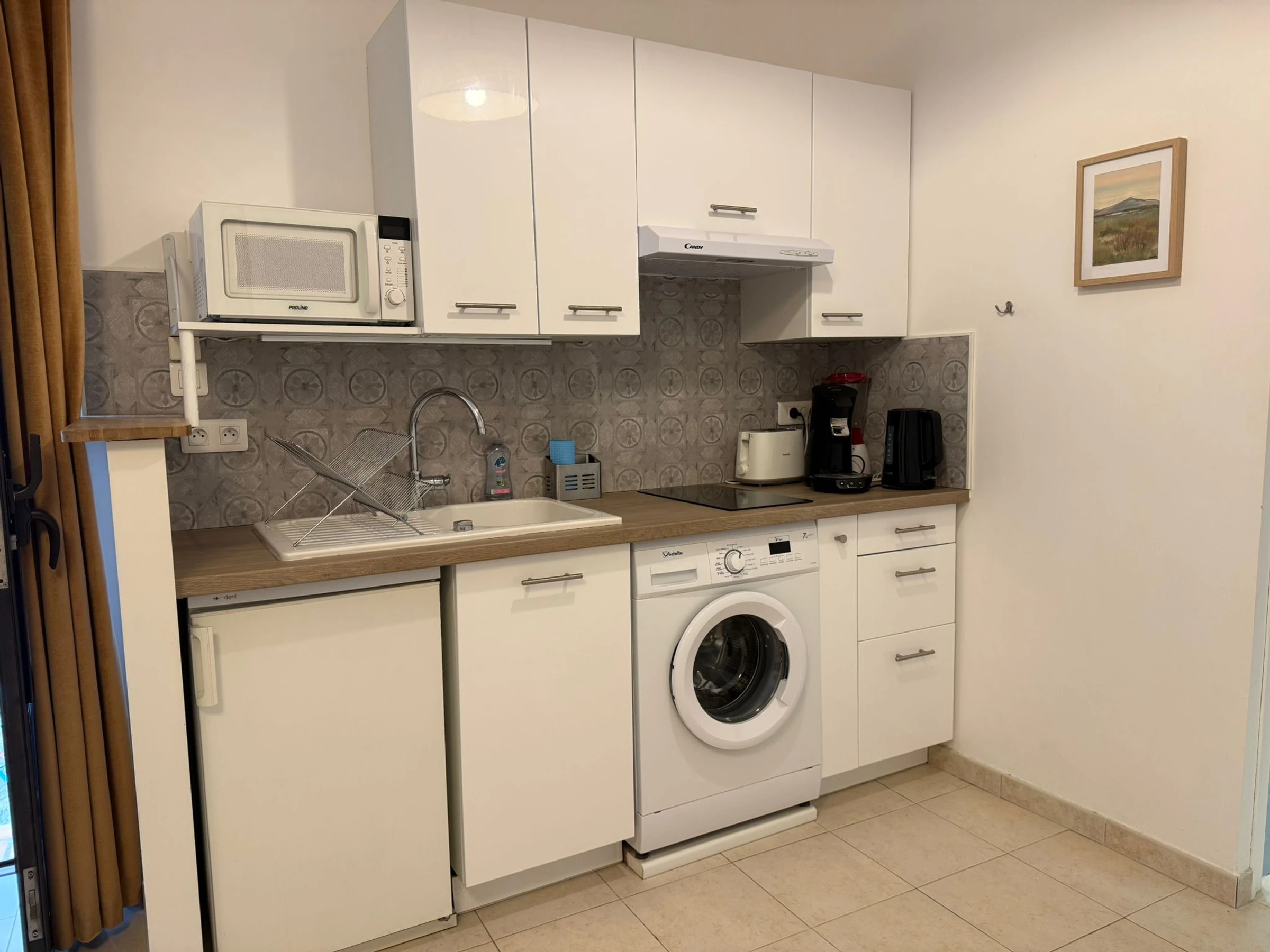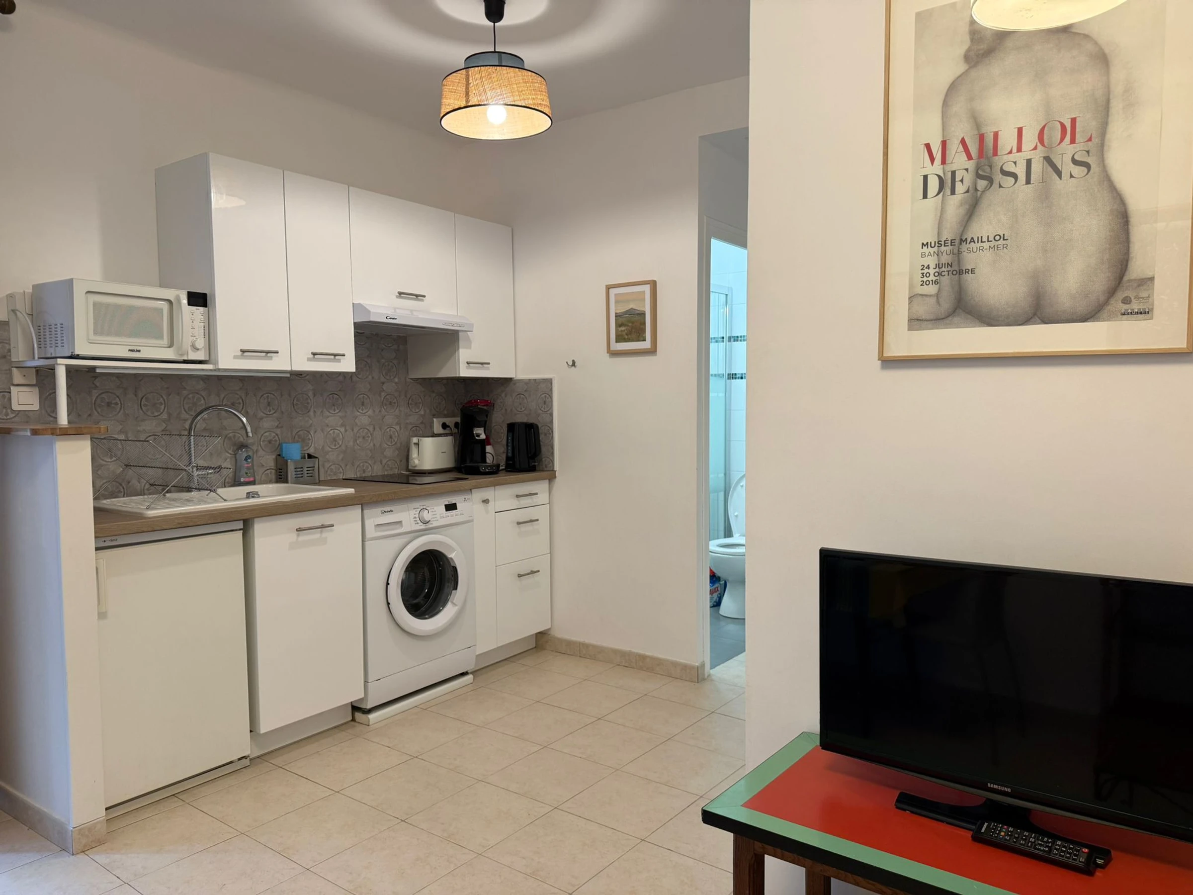 Il se compose d’un séjour-salon lumineux, d’un coin cuisine entièrement équipée ( cafetière Senseo), d’une chambre confortable, et d’une salle d’eau fonctionnelle.