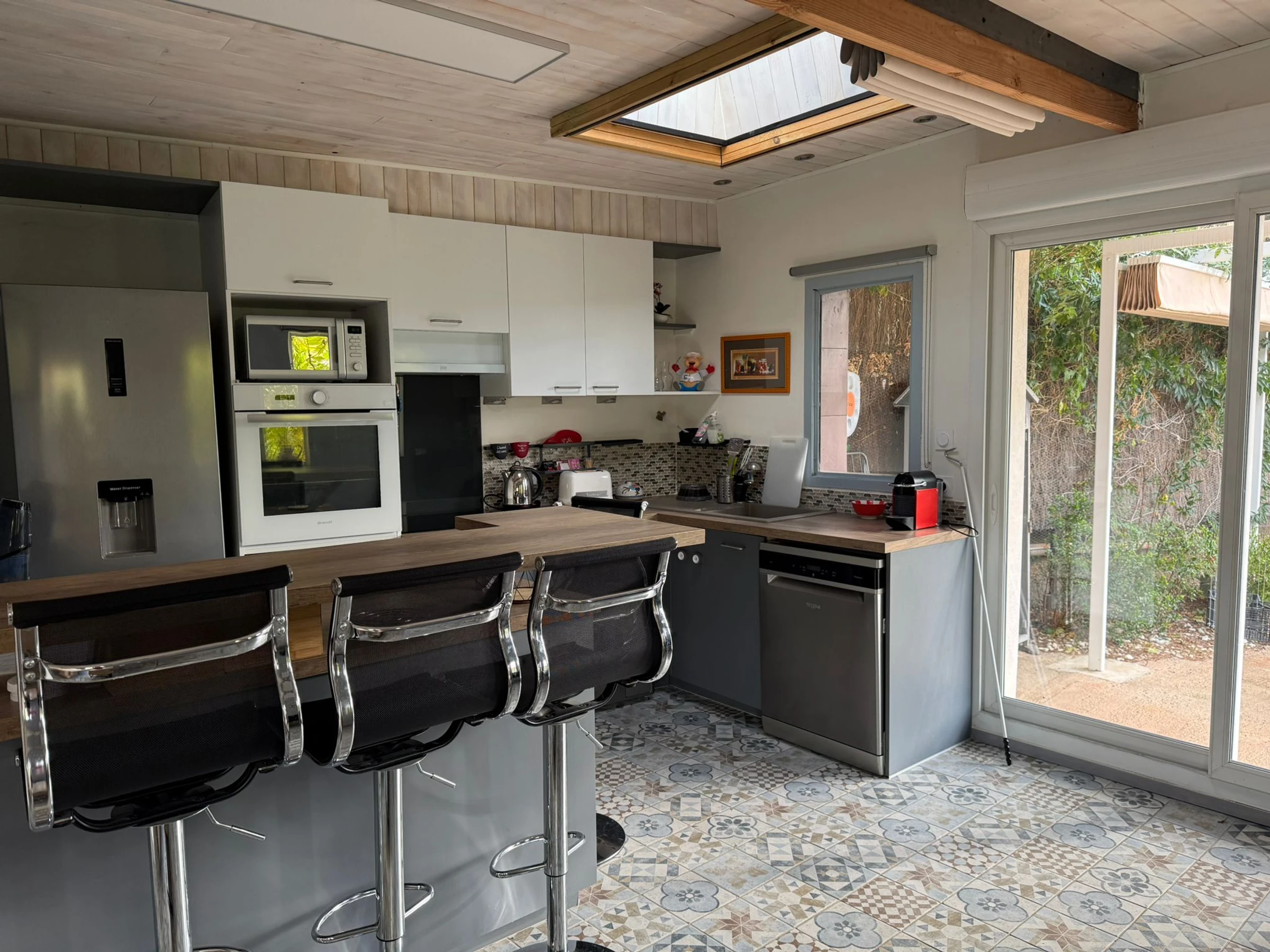 Une cuisine américaine entièrement équipée (cafetière à capsule), également ouverte sur la terrasse et son barbecue, idéale pour vos repas en plein air.