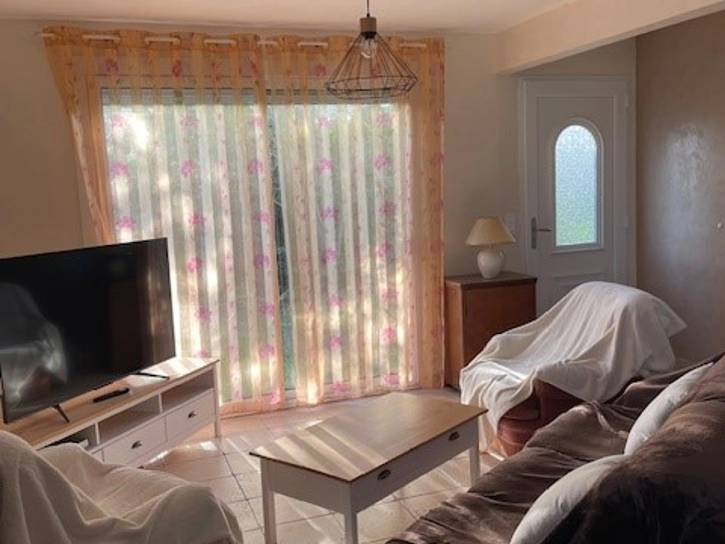 Maison de plain-pied non mitoyenne confort pouvant accueillir 6 personnes - 75 m² environ - comprenant séjour/salon, cuisine aménagée et équipée, une chambre avec un lit en 140, une chambre avec un lit en 140 et télévision, une chambre avec 2 lits en 90, salle d'eau, wc. Réfrigérateur/congélateur, lave-vaisselle, hotte, micro-ondes, four, plaque gaz, lave-linge, télévision, lecteur DVD.