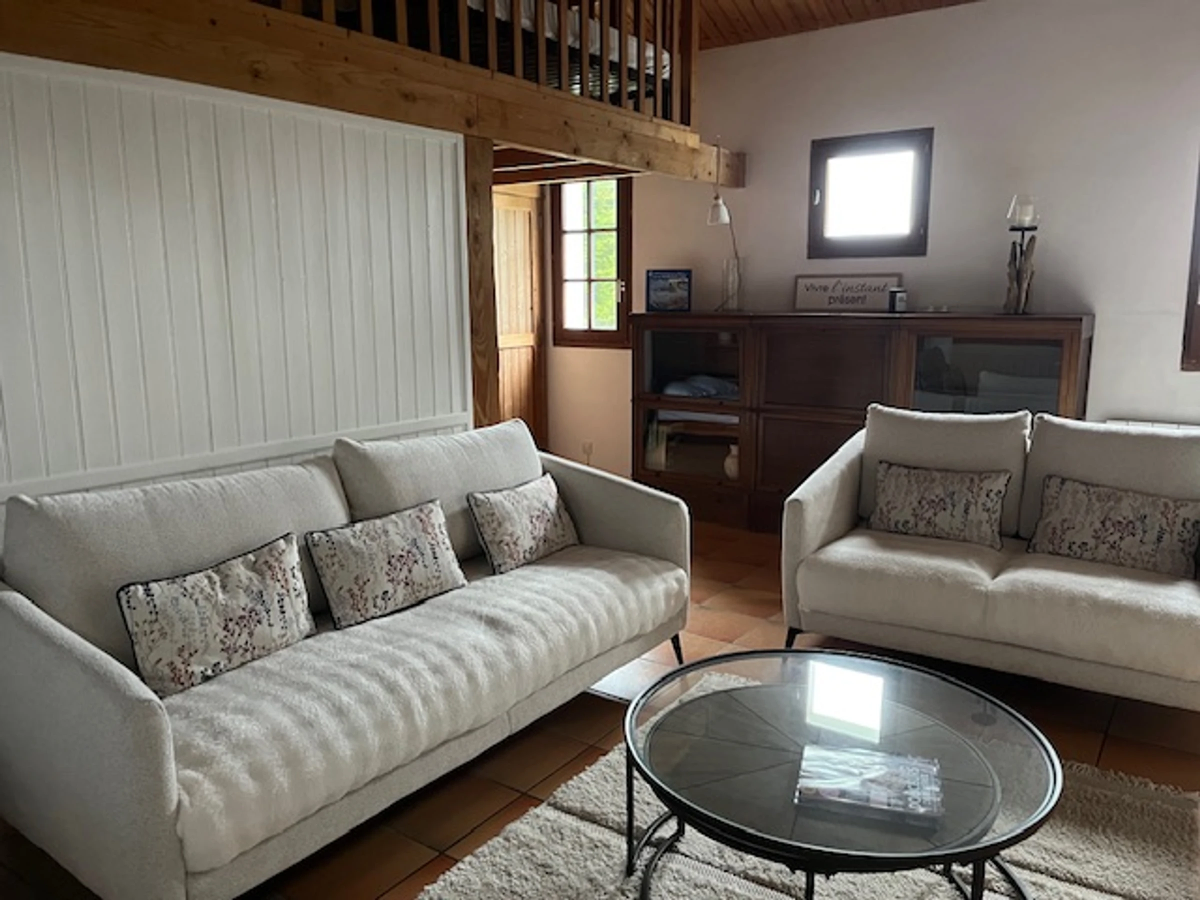 1 – séjour avec cuisine ouverte, salon avec cheminée et un coin nuit avec un lit en 140, une mezzanine avec 2 lits en 70, une chambre avec lit en 140 et salle d’eau avec wc, salle d'eau indépendante entièrement refaite en 2025 avec wc. Lave-vaisselle, micro-ondes, four, plaque induction, 2 combinés réfrigérateur/congélateur, télévision, wifi GRATUITE