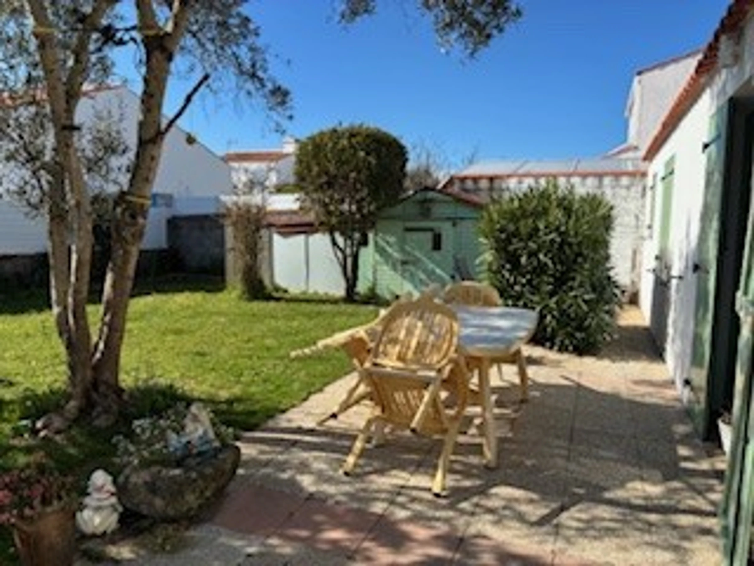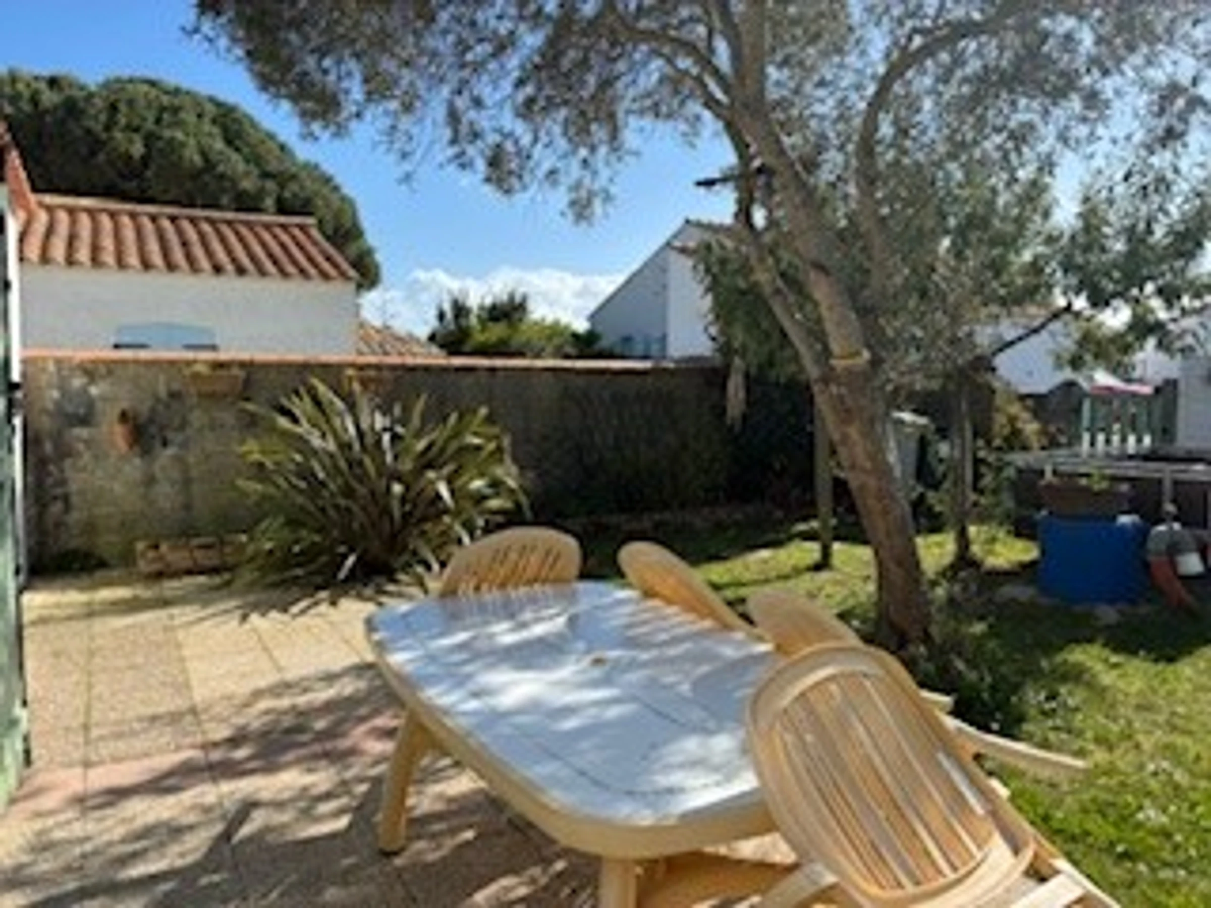 Maison mitoyenne de plain pied de 70 m² environ - 6 personnes comprenant cuisine, séjour/salon, une chambre avec un lit en 160 et une télévision, une chambre avec un lit en 140, une chambre avec un lit en 140, salle d'eau, wc. Lave-linge, four, micro-ondes, lave-vaisselle, combiné réfrigérateur/congélateur, télévision, lecteur DVD, WIFI gratuite. Jardin clos avec salon de jardin, 3 transats, barbecue, local à vélos. Stationnement non clos devant le garage. Animaux admis. Possibilité d'un forfait ménage de 108 €.