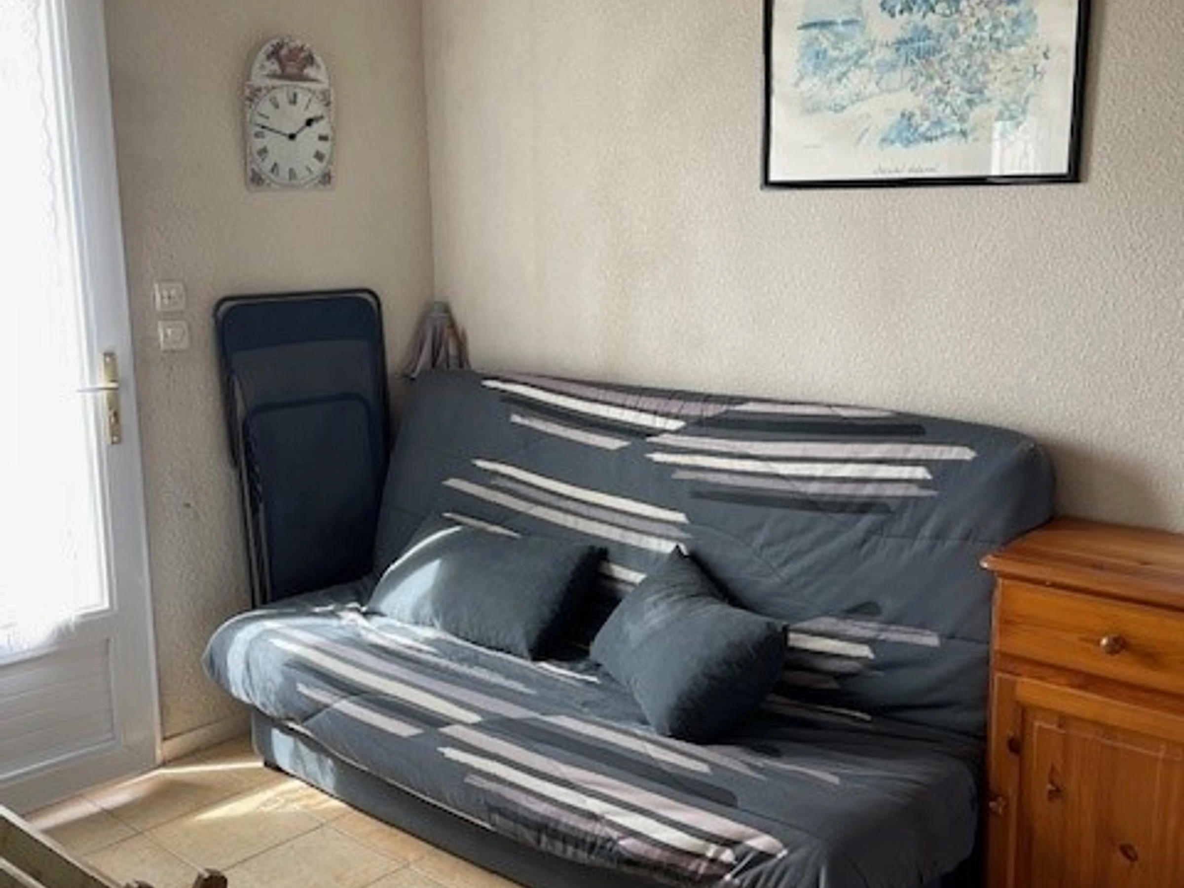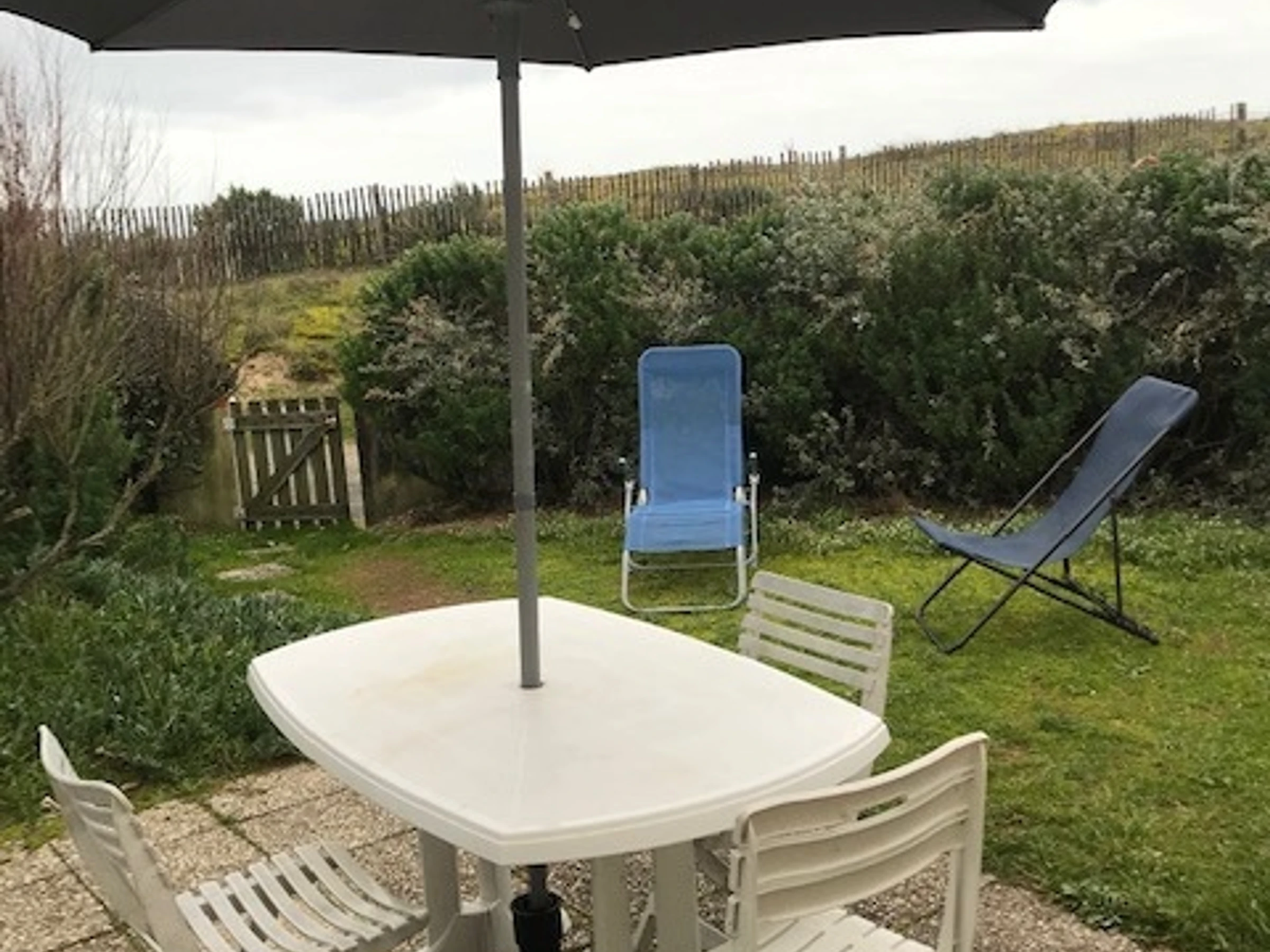 Maisonnette mitoyenne standard de 24 m² environ dans résidence - 4/5 Pers – comprenant en Rdc : séjour/kitchenette avec clic-clac en 130, une chambre avec un lit en 140, salle de bains, wc. A l’étage : mezzanine avec deux lits de 80 (hauteur réduite, accès par échelle). Télévision couleur, mini-four, salon de jardin. Courette fermée sur l’avant avec terrasse. Stationnement sur rue ou parking de la résidence. Animaux non admis. Possibilité d'un forfait ménage de 60 €.