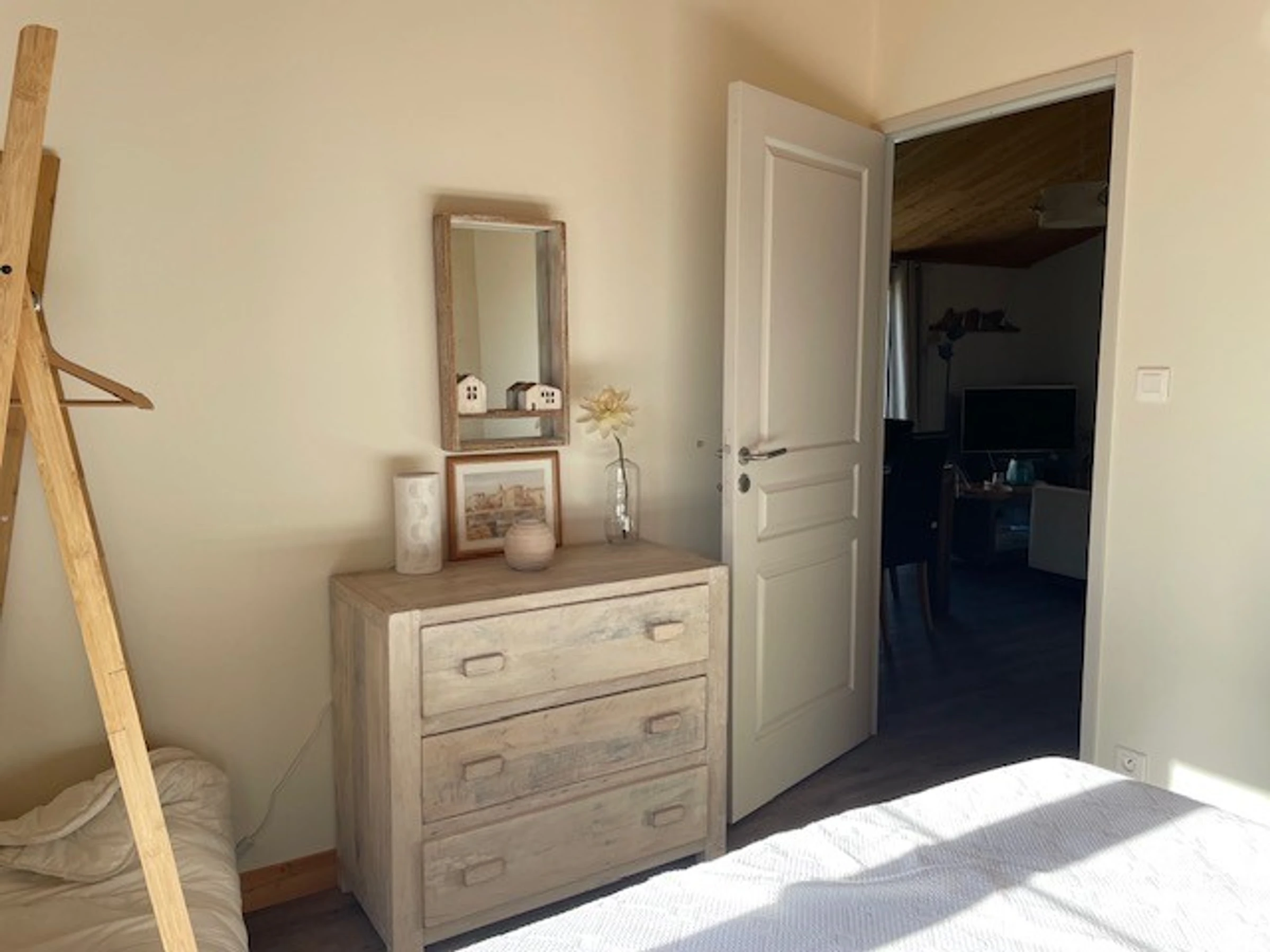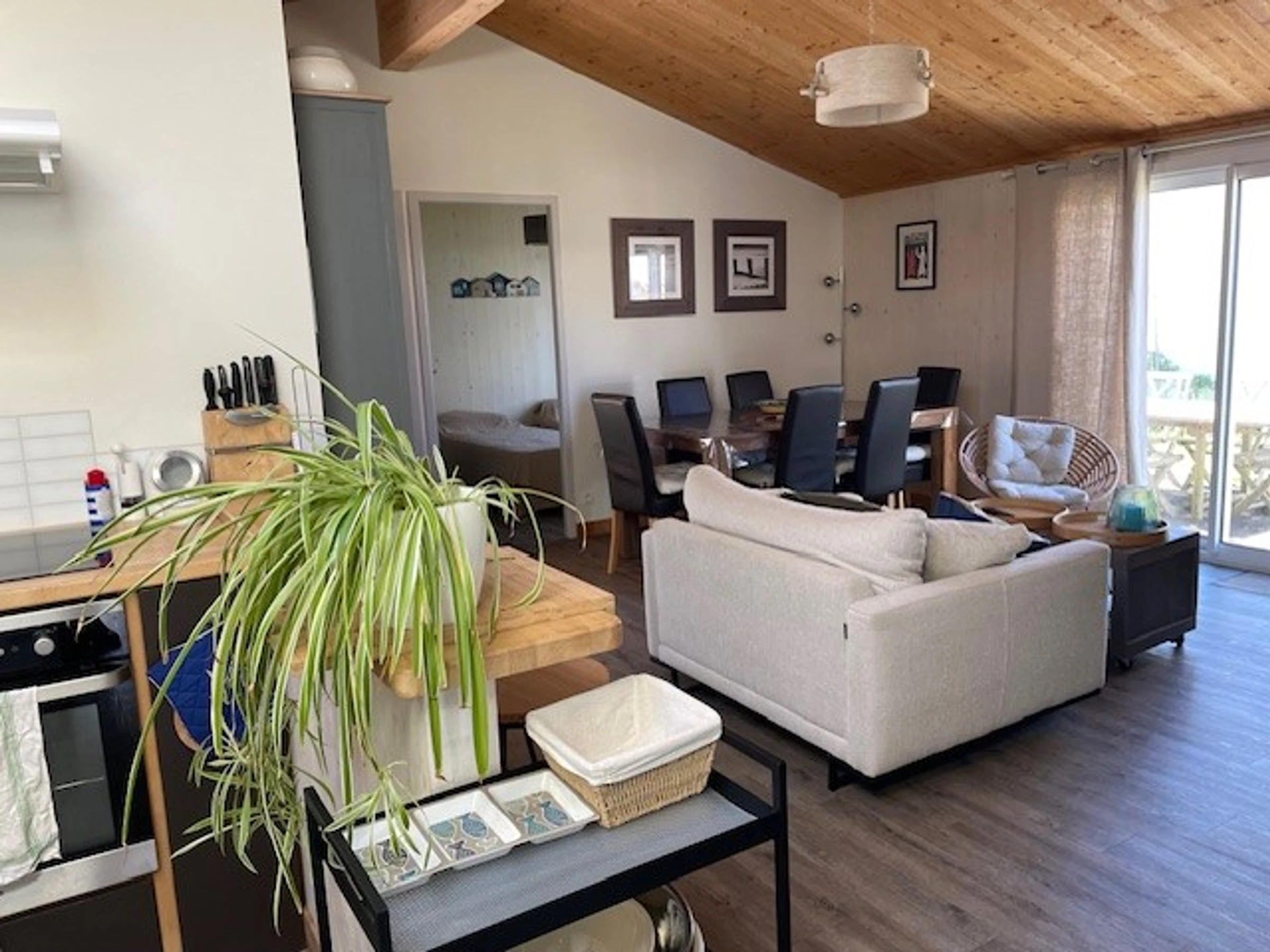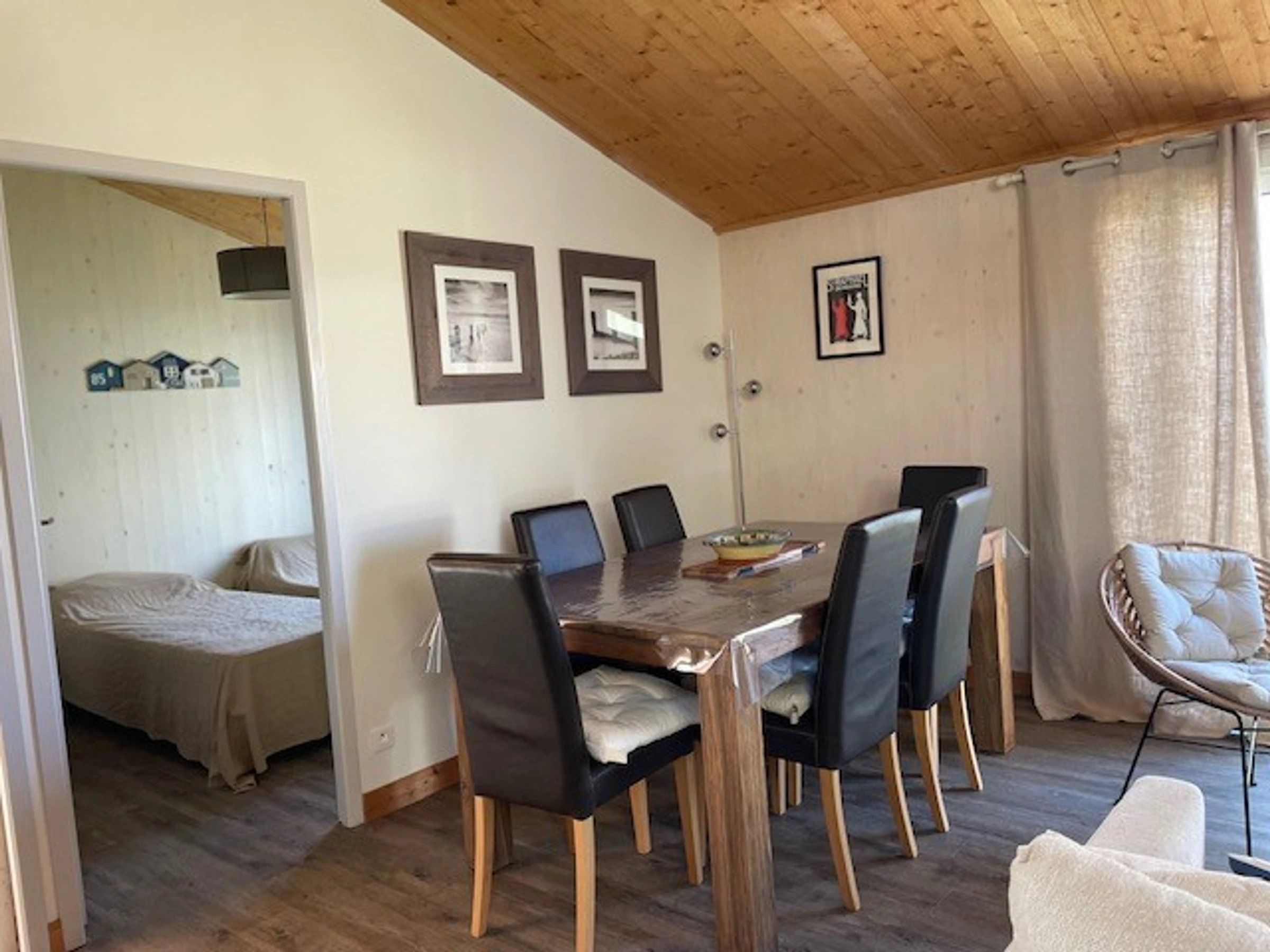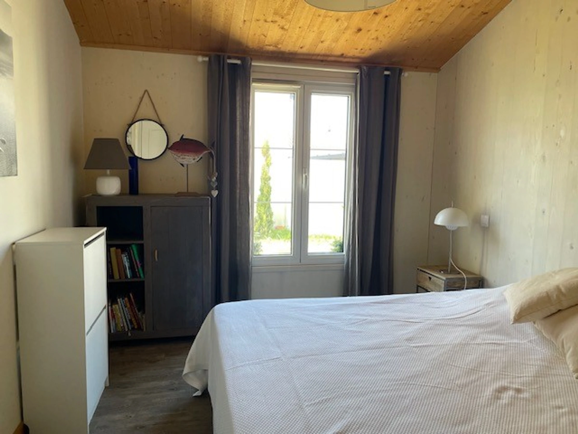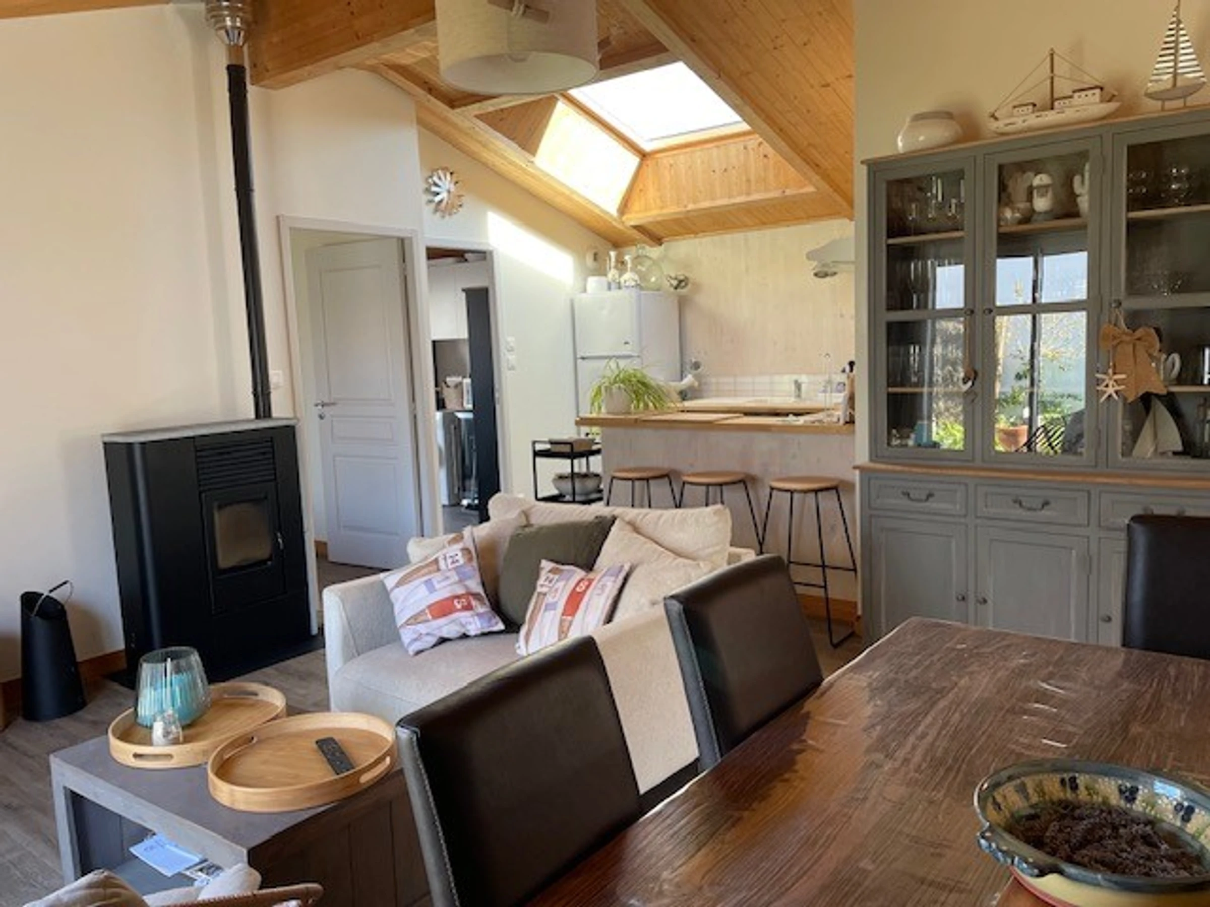 Maison de plain pied pouvant accueillir 6 personnes - 70 m² environ - comprenant une entrée, un séjour avec coin cuisine avec poêle à bois, une chambre avec un lit en 160, une chambre avec un lit en 140, une chambre avec 2 lits en 80, une salle d'eau, un wc. Plaque cuisson induction, four, micro-ondes, lave-vaisselle, réfrigérateur/congélateur, lave-linge, cave à vins, télévision, WIFI gratuite. Jardin clos avec terrasse, salon de jardin, 1 bain de soleil, 3 transats, barbecue. Stationnement sur propriété. Animaux non admis. Possibilité d'un forfait ménage de 100 €.